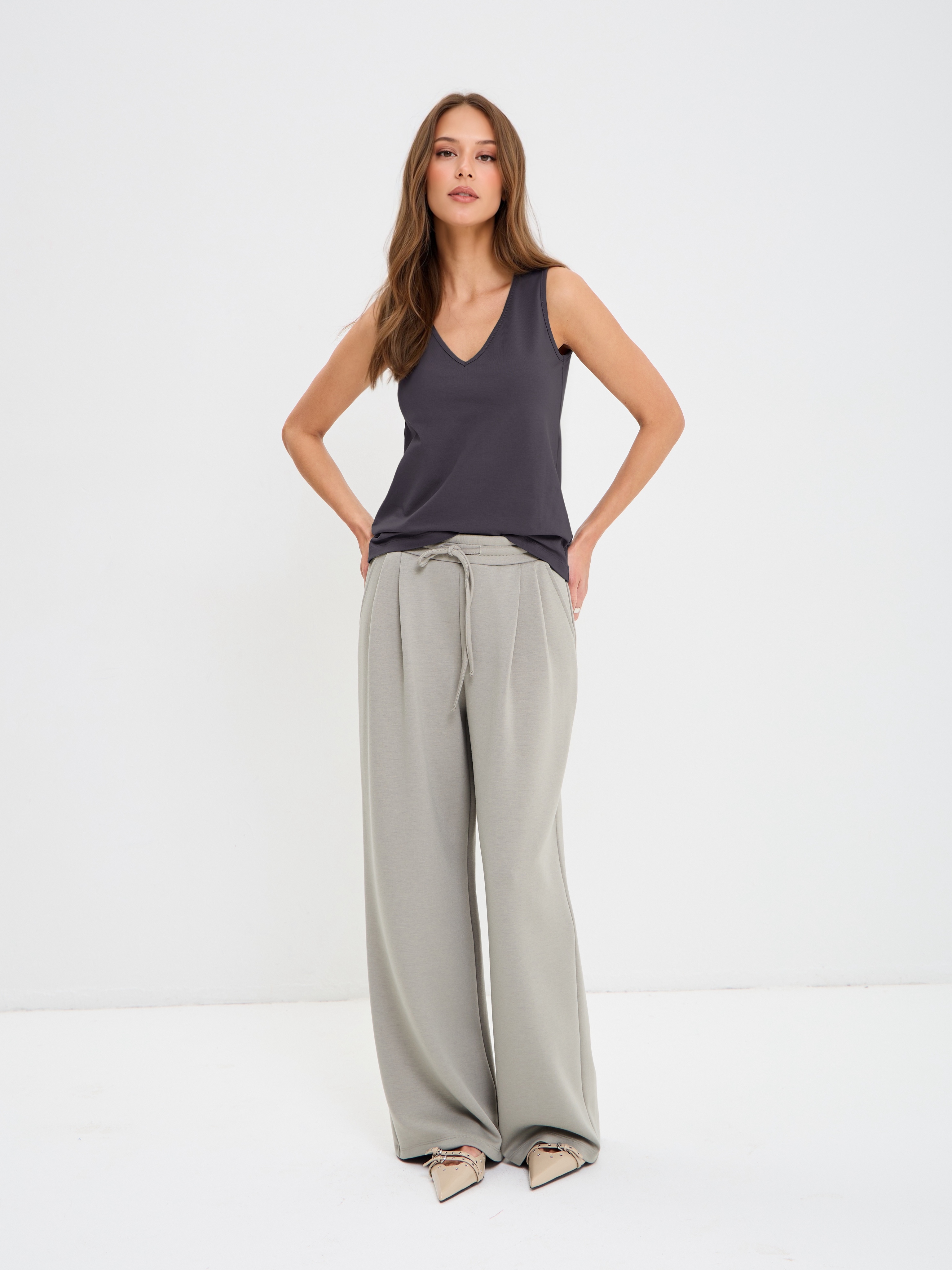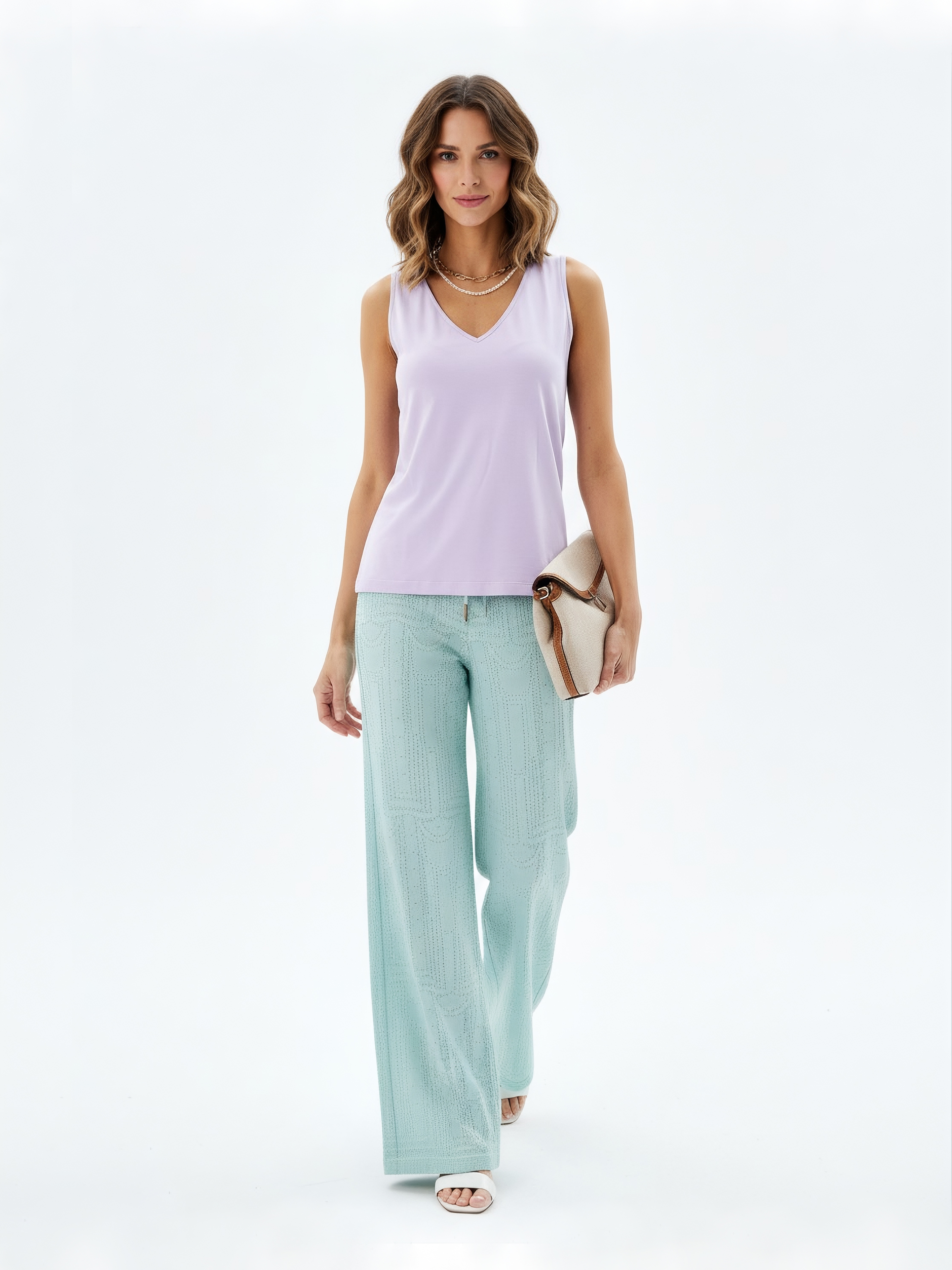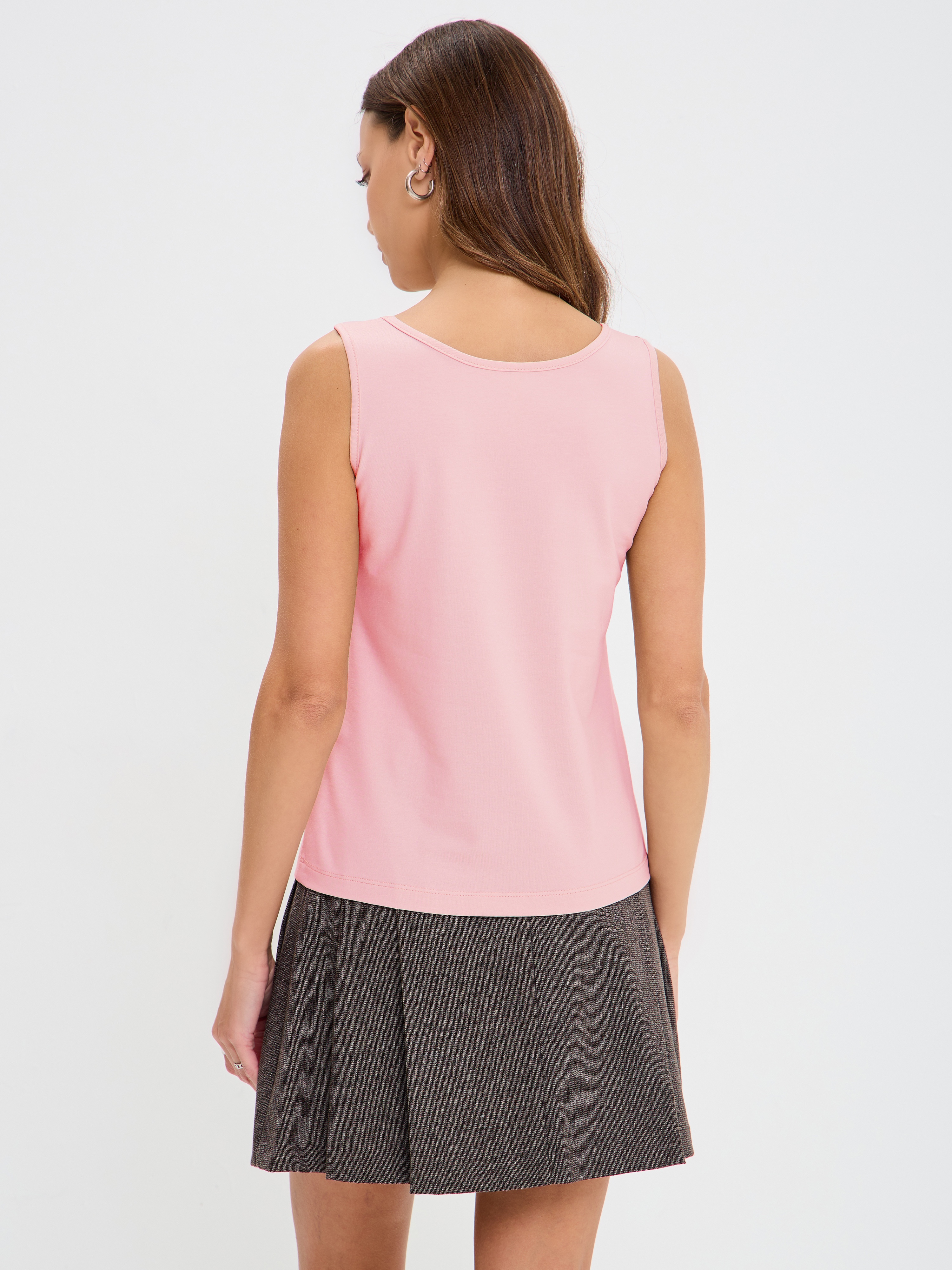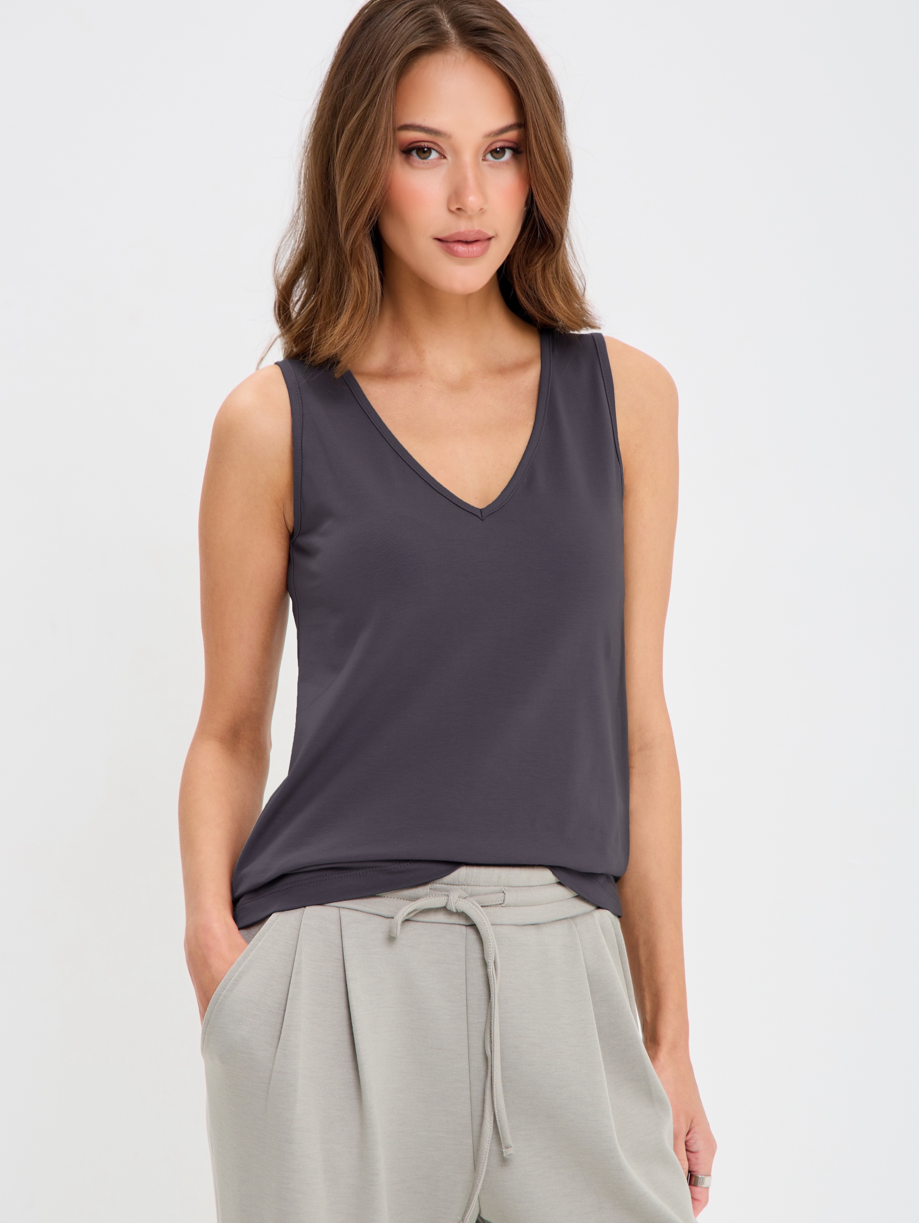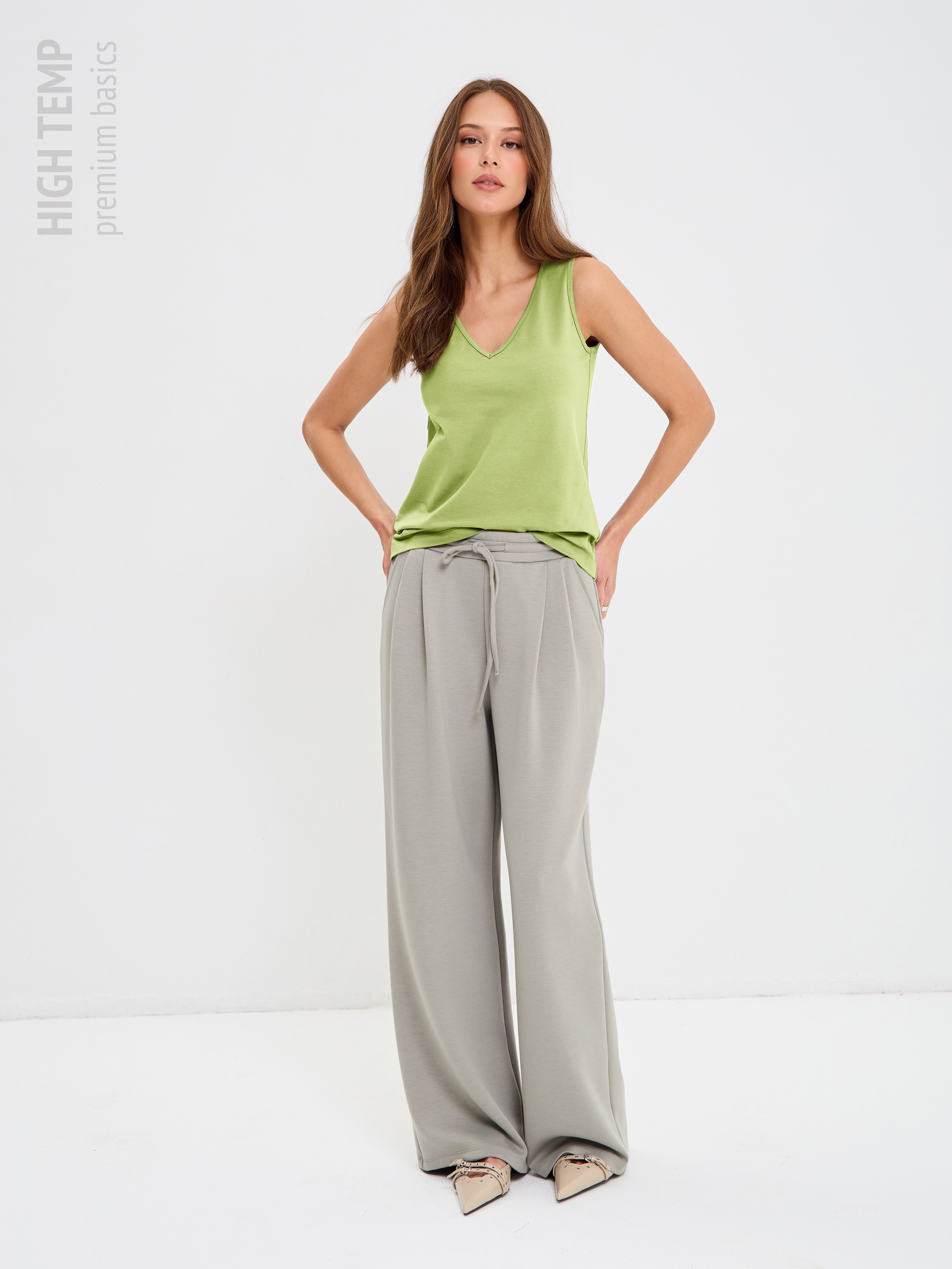 Базовый трикотажный однотонный топ с V-образным вырезом горловины - оптимальный выбор для лета и для офиса. Такая женская майка из хлопка идеальное дополнение к жакету, пиджаку или кардигану. Женский топ с треугольным вырезом благодаря своему натуральному составу можно использовать как спортивный, повседневный, как домашнюю одежду или пижаму. Полуприлегающий фасон футболки без рукавов эффектно подчеркивает грудь, а глубокий вырез горловины V-формы топа придает образу легкость и женственность. Топ женский летний на широких бретелях полностью закрывает лямки от белья и на плечах, и на спинке, поэтому в нем Вы всегда будете чувствовать себя свободно и уверенно. Бельевой топ из трикотажа заменит футболку или блузку, избавив от лишнего объема, что важно при создании многослойных образов. Открытая женская блузка в виде топа - трендовый предмет одежды женского гардероба на любой сезон. Модный фасон классической майки идеален для спортивной формы команды или для девичника, так как топ футбола подойдет для росписи и печати. Повседневный легкий хлопковый топик из натуральной ткани классической длины хорошо сочетается с джинсами и шортами, юбками и брючными костюмами, что делает его практичным и незаменимым в качестве майки на море или топа для прогулок или на выход. Стильная одежда для женщин большого и маленького размера актуальна всегда, даже если Вы ищите одежду для мамы или бабушки. Желто-оранжевый, черный, зелёный, бежевый, розовый классический топ с треугольным вырезом горловины под блейзер от HIGH TEMP - выбор для тех, кто ценит качество.