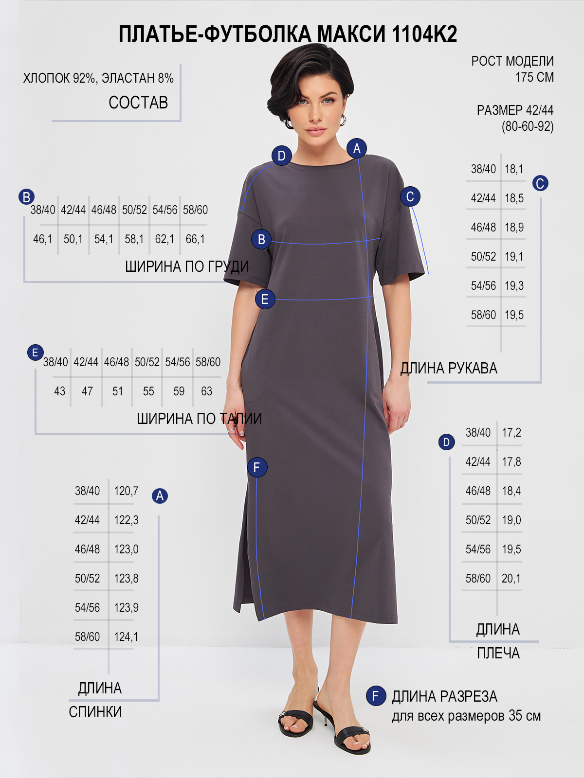 Длинное платье-футболка оверсайз - нечто незаменимое, что не может отсутствовать в вашем гардеробе этой весной и летом! Однотонное платье свободного силуэта с функциональными глубокими карманами дает ощущение легкости, непринужденности и свободы движений. Натуральный состав (92% хлопок, 8% эластан) хлопкового платья позволяет телу дышать и чувствовать себя комфортно и в жару. Трикотажное платье maxi с высокими разрезами по бокам идеально сочетается с открытыми босоножками на плоском ходу, с кедами или массивными кроссовками. В таком женском легком платье невероятно удобно прогуливаться под палящими лучами во время отпуска, или, дополнив легкое платье кожаной, либо джинсовой косухой - по ночному летнему городу. Высокое качество трикотажа предотвращает пилингование (появление катышек) и деформацию летнего платья максимальной длинны от HIGH TEMP.