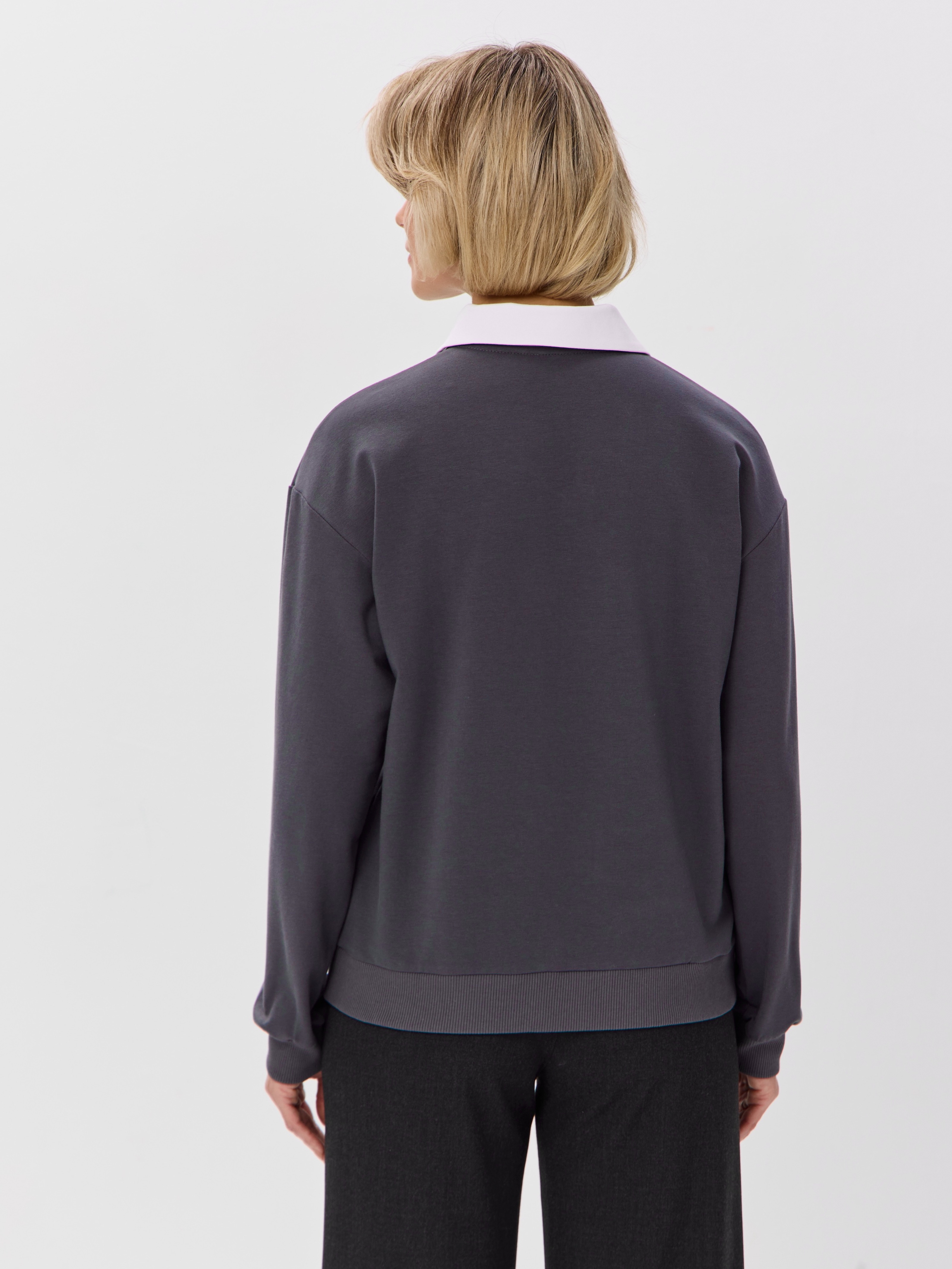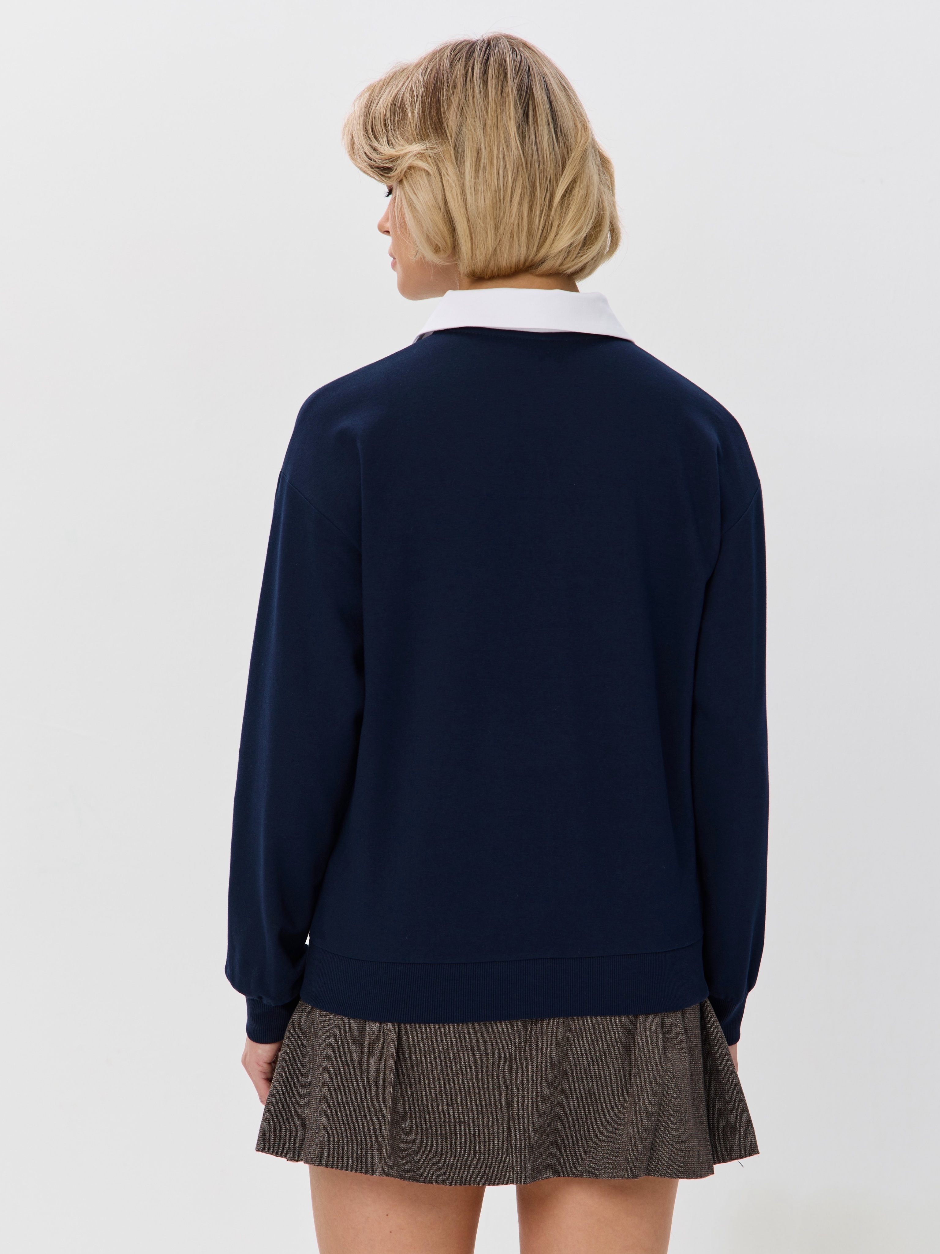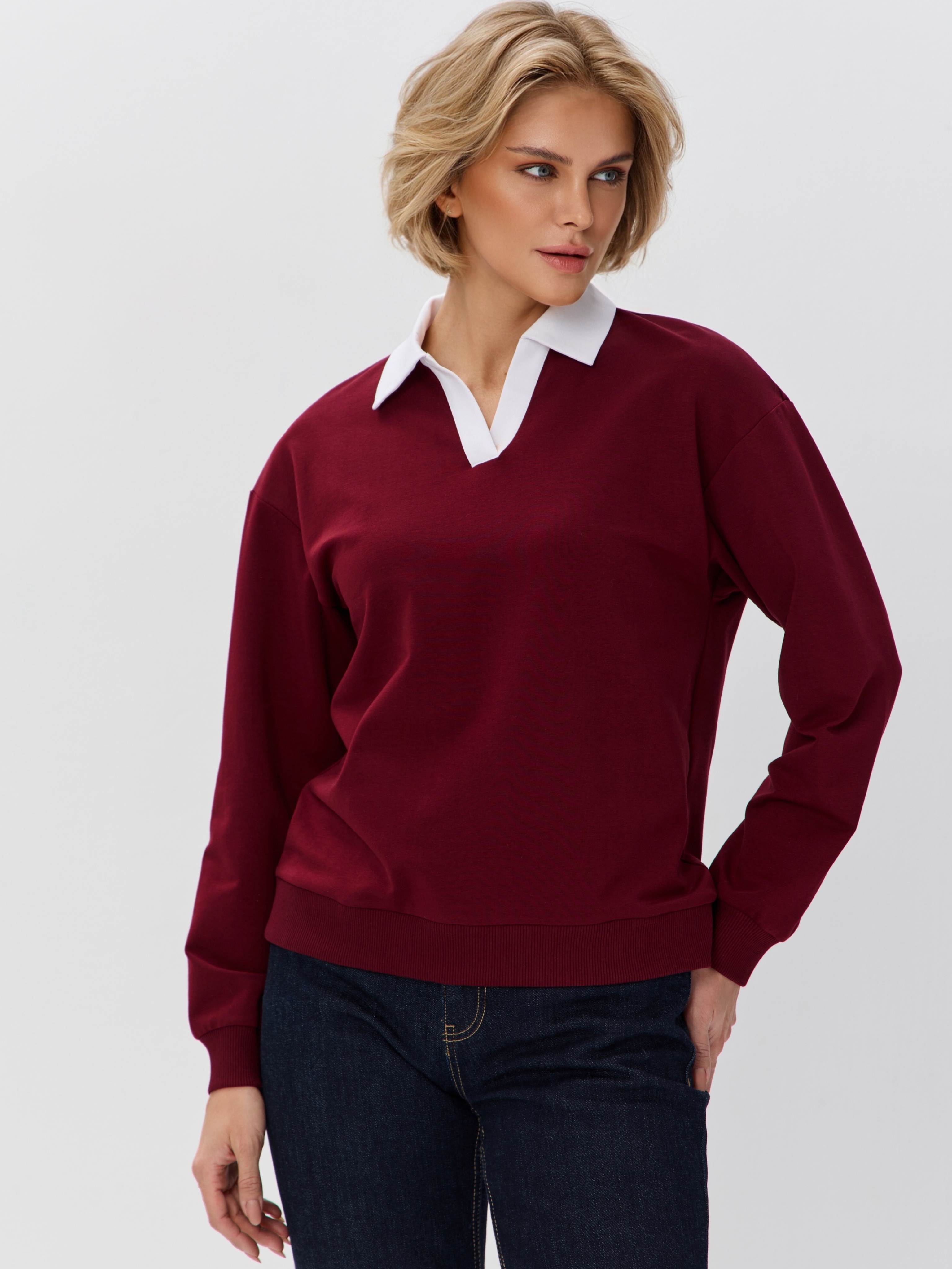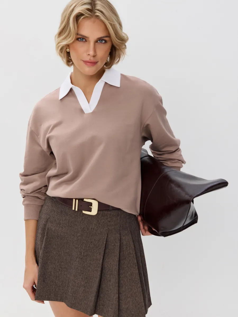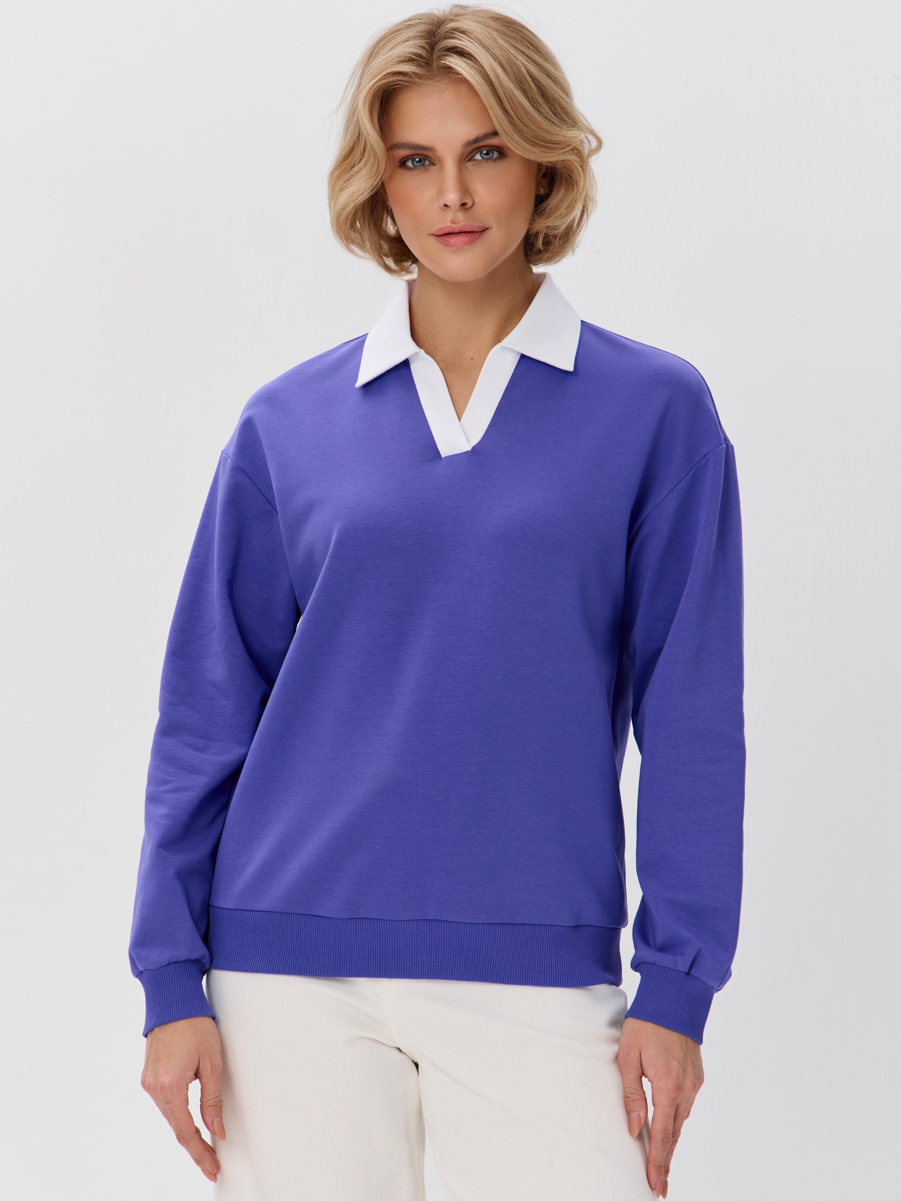 Джемпер с рубашечным воротником поло - современный элегантный уют. Откройте для себя идеальный баланс комфорта и стиля — женский джемпер с контрастным белым воротником‑поло. Это не просто кофта, а настоящая находка для тех, кто ценит в одежде продуманные детали и универсальность. Модель сочетает уют классического свитшота и лаконичность рубашки благодаря контрастному белому воротнику. Такой акцент мгновенно преображает образ, добавляя ему свежести и изысканности. Джемпер выполнен из хлопкового футера 2-нитки с добавлением эластана. Это значит, что натуральная основа дарит комфорт и позволяет коже «дышать», а эластан обеспечивает идеальную посадку по фигуре и устойчивость к деформации. Материал приятен к телу и сохраняет форму даже после множества стирок. Этот джемпер с эффектом двойки легко впишется в любой гардероб: для офиса и школы — сочетайте с юбкой‑карандаш и лодочками или для прогулок — дополните джинсами и кроссовками. Женский джемпер поло HIGH TEMP - ваш новый базовый элемент с изюминкой. Ведь он подчёркивает женственность благодаря контрастному воротнику; сохраняет тепло в прохладную погоду; выглядит актуально в любом сезоне. Подарите себе ощущение комфорта, которое не придётся жертвовать ради стиля. Этот джемпер — ваш ключ к безупречным образам на каждый день.