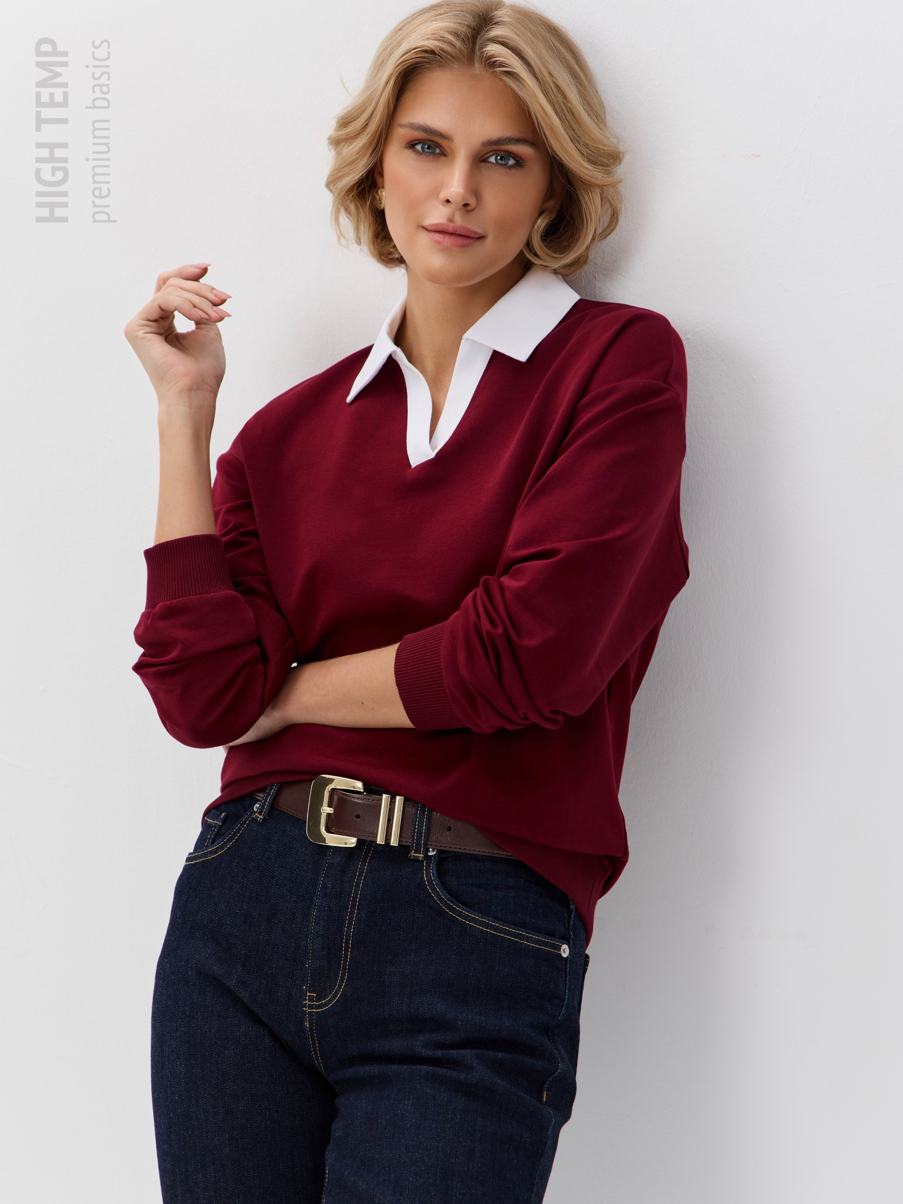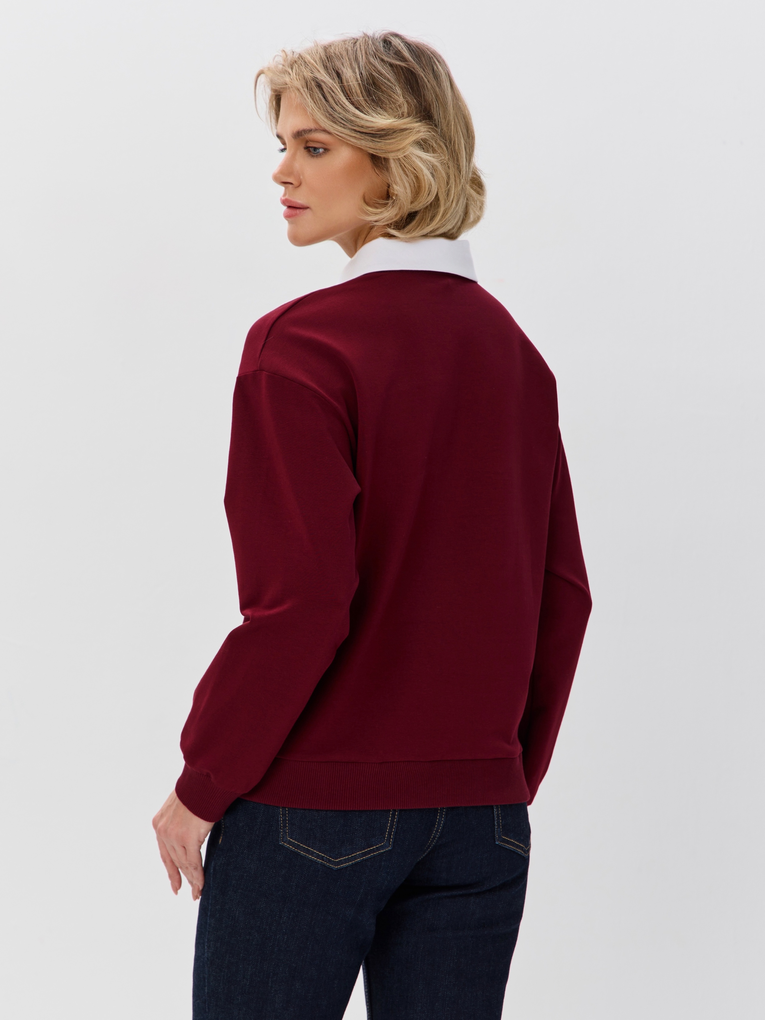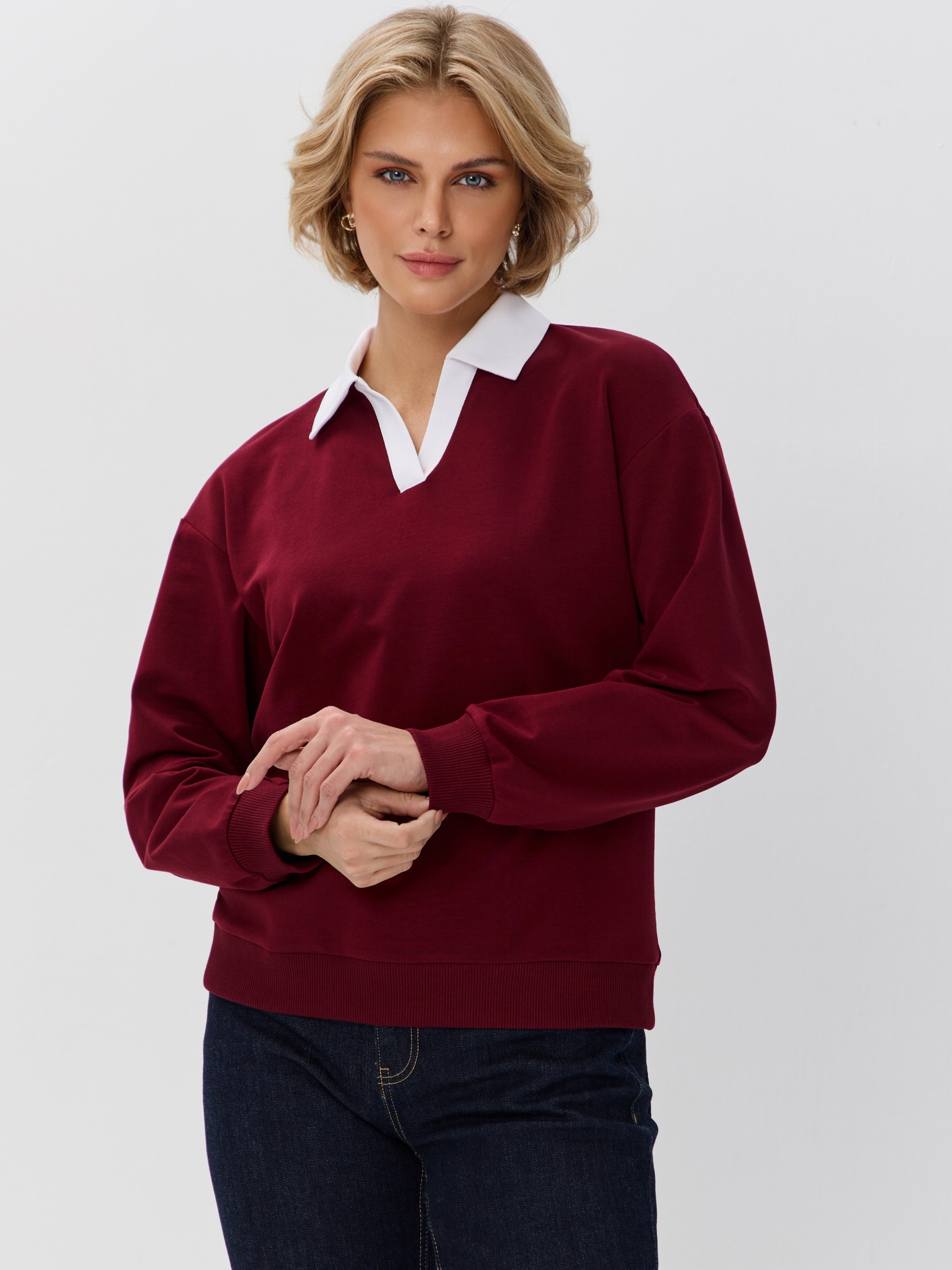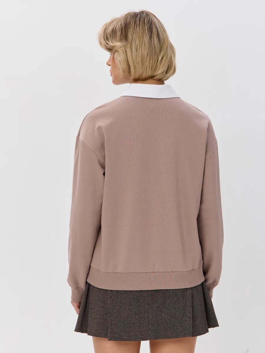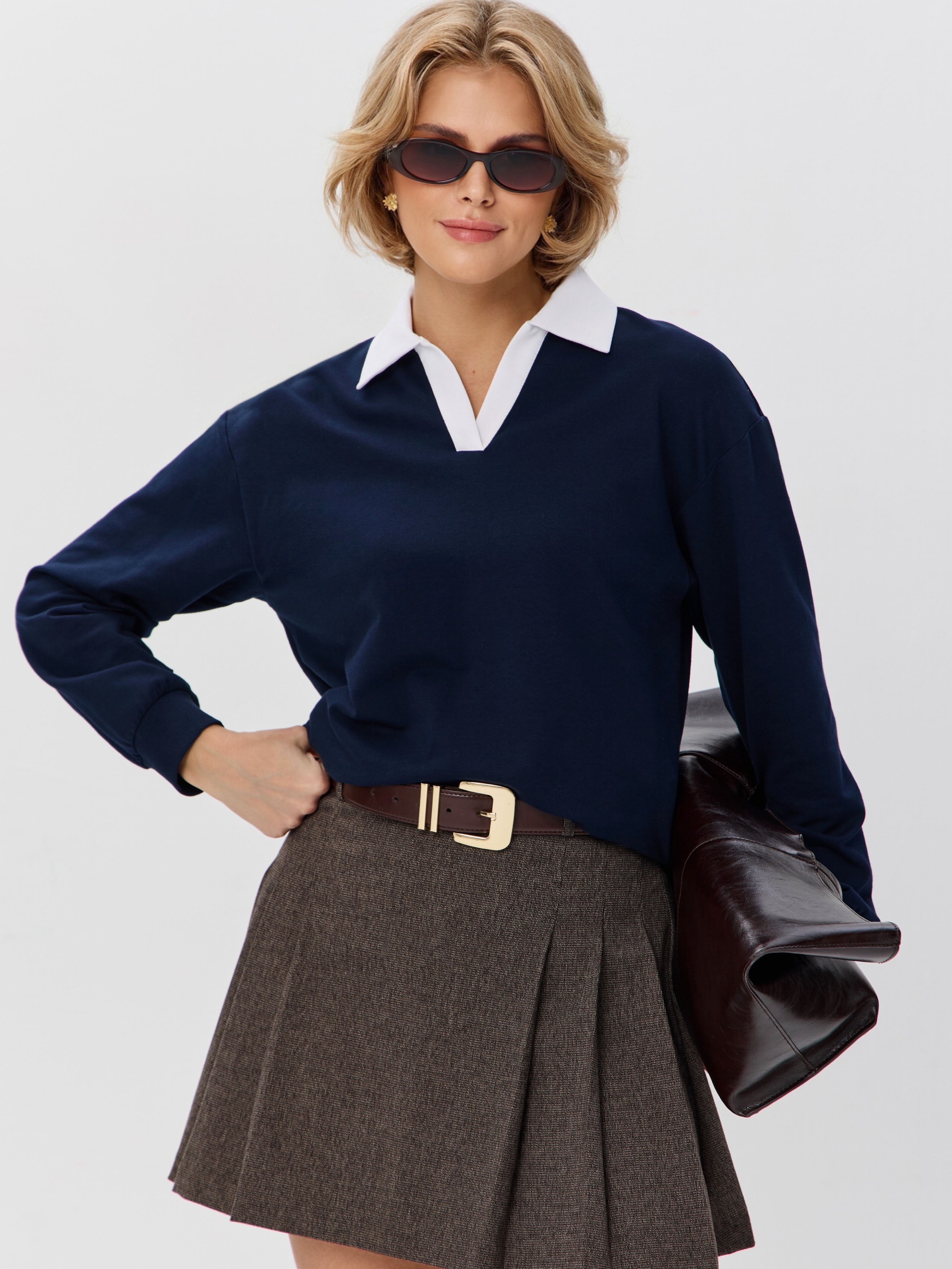 Джемпер с рубашечным воротником поло - современный элегантный уют. Откройте для себя идеальный баланс комфорта и стиля — женский джемпер с контрастным белым воротником‑поло. Это не просто кофта, а настоящая находка для тех, кто ценит в одежде продуманные детали и универсальность. Модель сочетает уют классического свитшота и лаконичность рубашки благодаря контрастному белому воротнику. Такой акцент мгновенно преображает образ, добавляя ему свежести и изысканности. Джемпер выполнен из хлопкового футера 2-нитки с добавлением эластана. Это значит, что натуральная основа дарит комфорт и позволяет коже «дышать», а эластан обеспечивает идеальную посадку по фигуре и устойчивость к деформации. Материал приятен к телу и сохраняет форму даже после множества стирок. Этот джемпер с эффектом двойки легко впишется в любой гардероб: для офиса и школы — сочетайте с юбкой‑карандаш и лодочками или для прогулок — дополните джинсами и кроссовками. Женский джемпер поло HIGH TEMP - ваш новый базовый элемент с изюминкой. Ведь он подчёркивает женственность благодаря контрастному воротнику; сохраняет тепло в прохладную погоду; выглядит актуально в любом сезоне. Подарите себе ощущение комфорта, которое не придётся жертвовать ради стиля. Этот джемпер — ваш ключ к безупречным образам на каждый день.