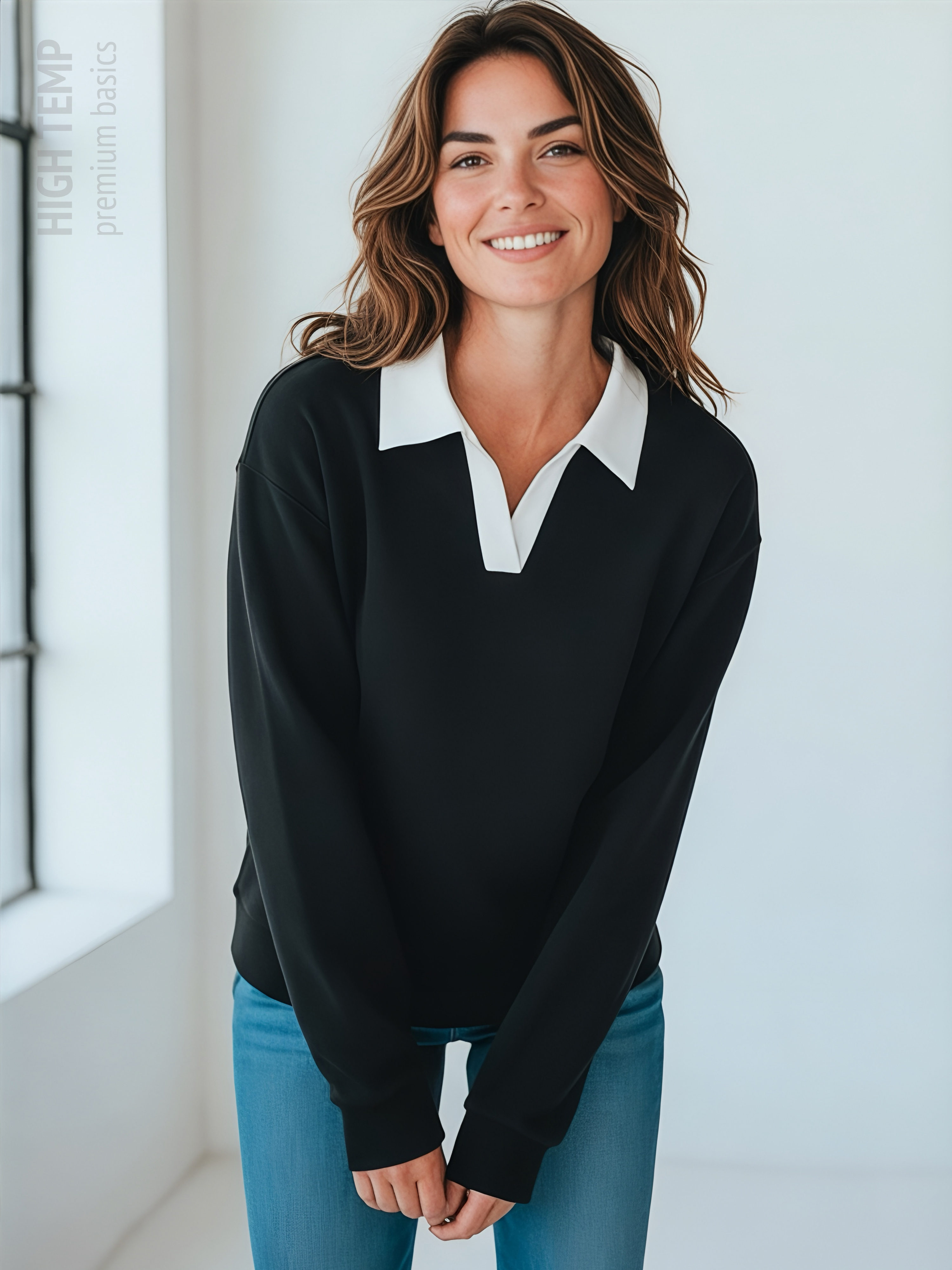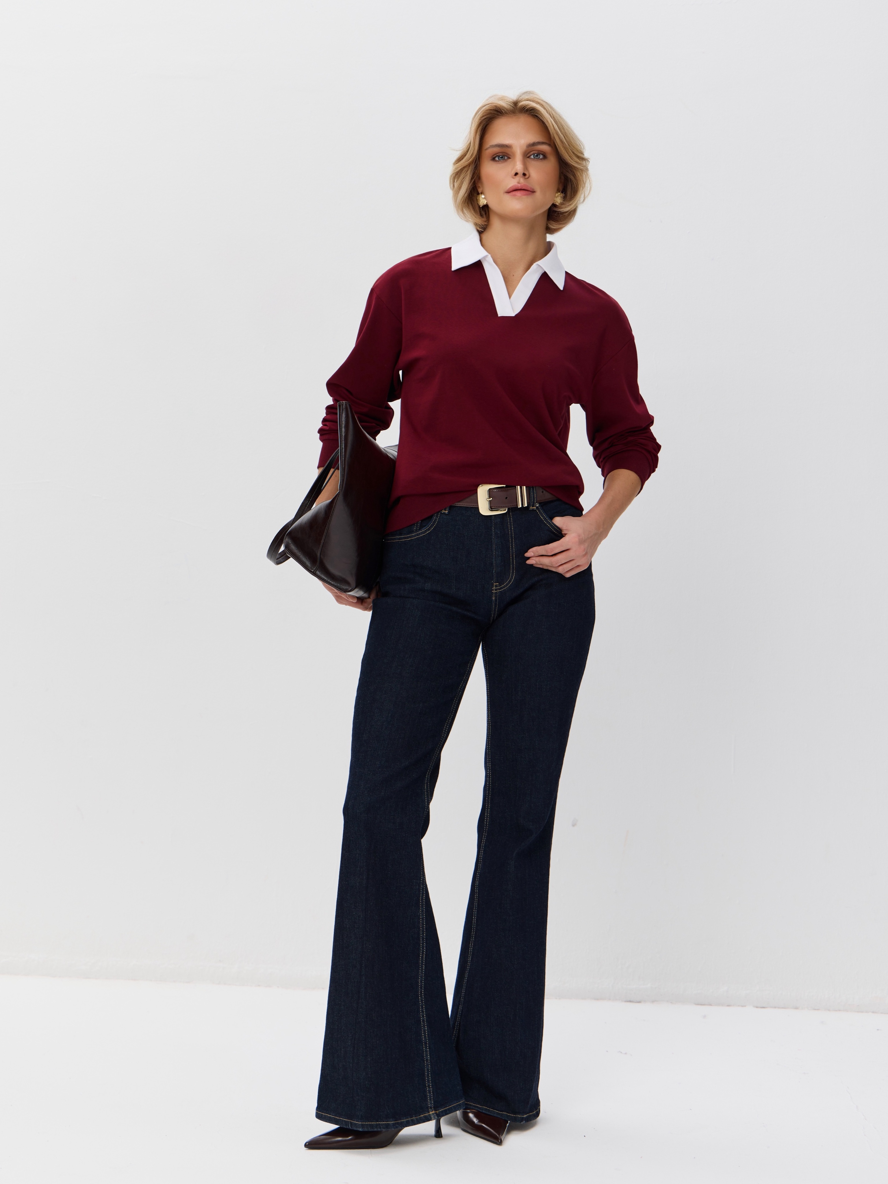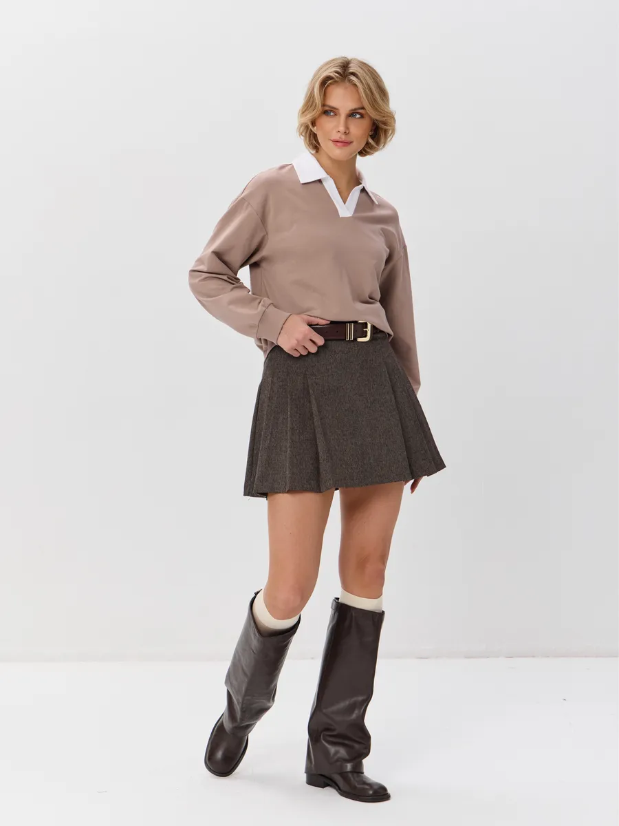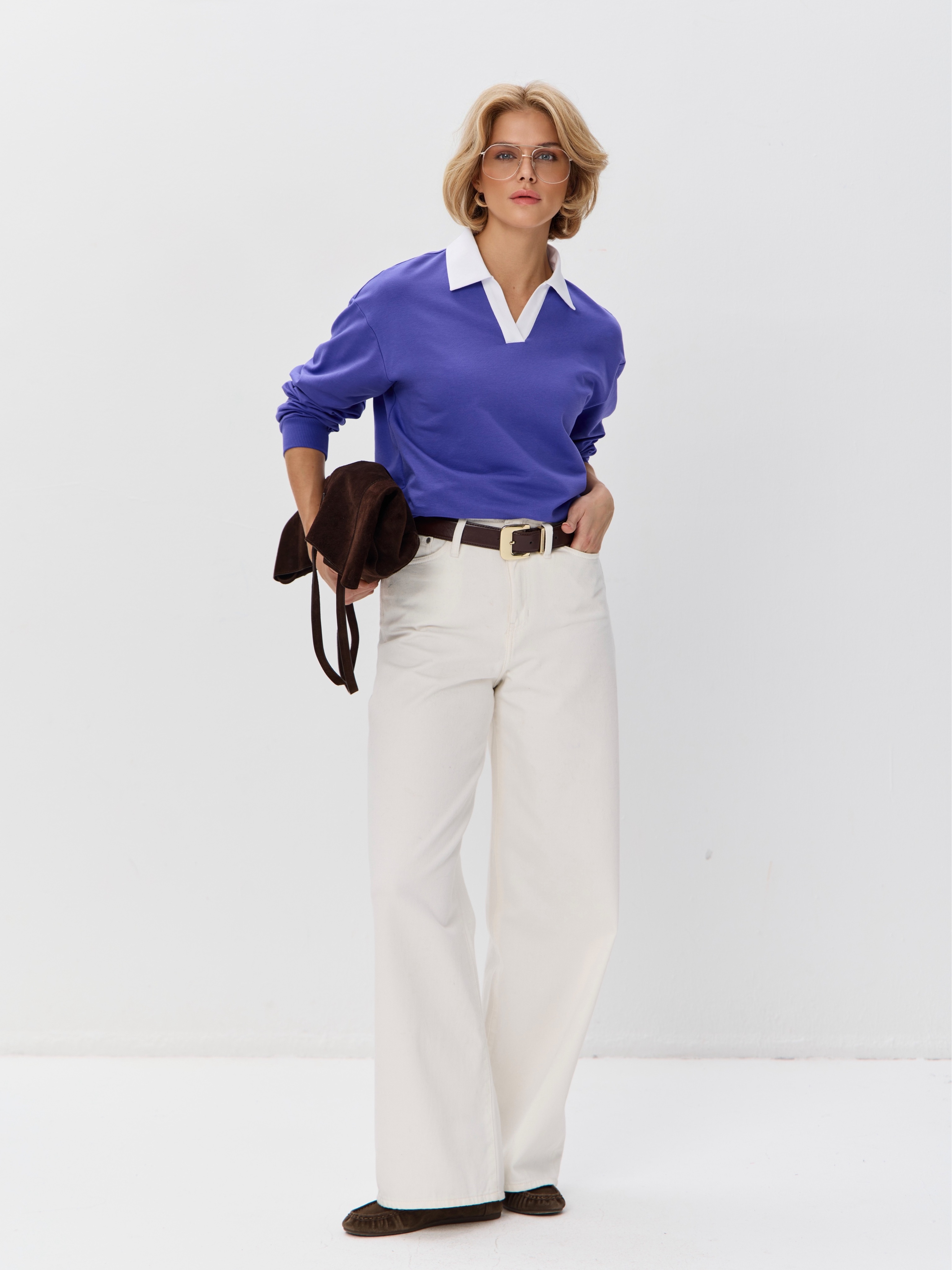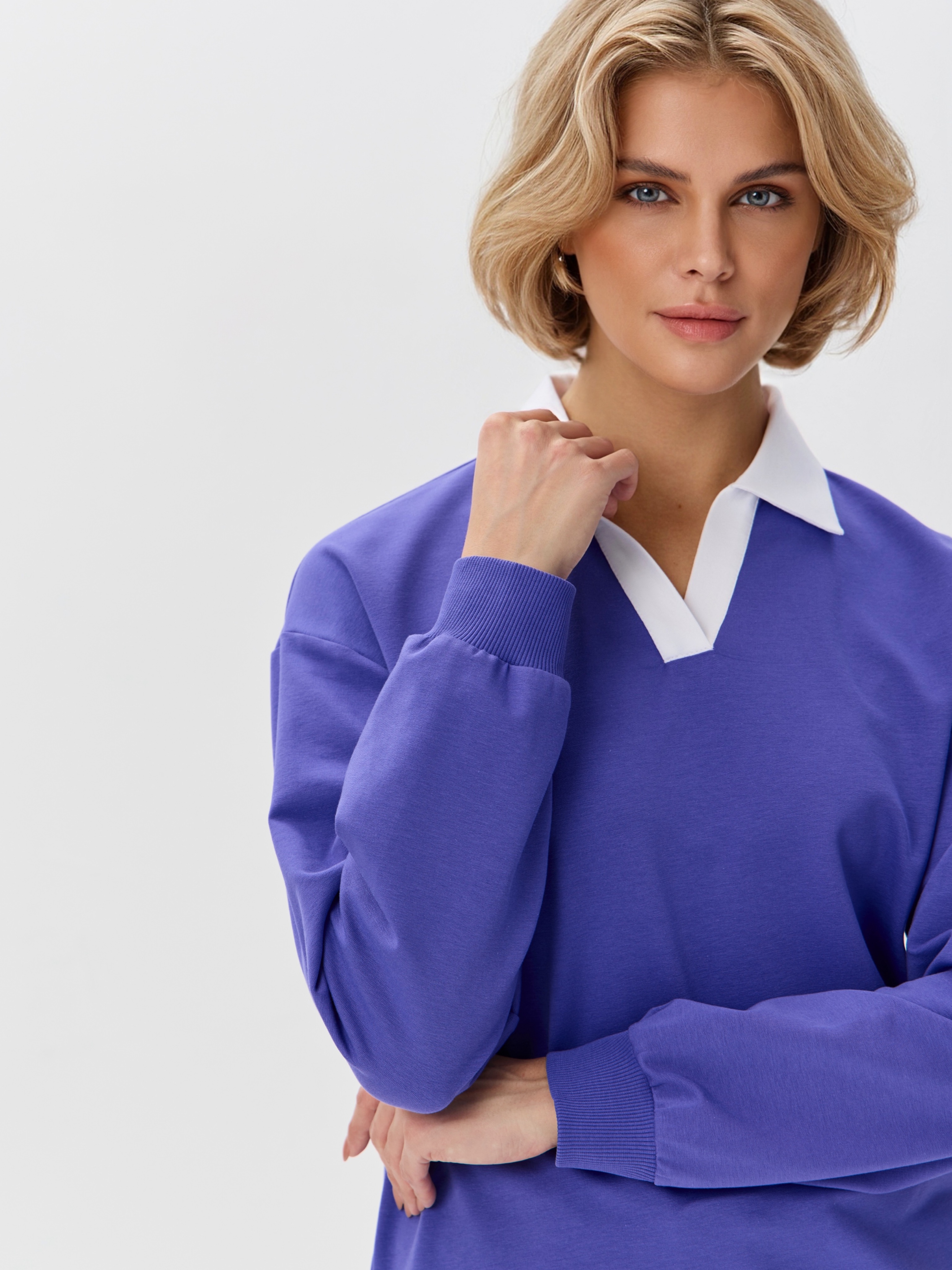 Джемпер с рубашечным воротником поло - современный элегантный уют. Откройте для себя идеальный баланс комфорта и стиля — женский джемпер с контрастным белым воротником‑поло. Это не просто кофта, а настоящая находка для тех, кто ценит в одежде продуманные детали и универсальность. Модель сочетает уют классического свитшота и лаконичность рубашки благодаря контрастному белому воротнику. Такой акцент мгновенно преображает образ, добавляя ему свежести и изысканности. Джемпер выполнен из хлопкового футера 2-нитки с добавлением эластана. Это значит, что натуральная основа дарит комфорт и позволяет коже «дышать», а эластан обеспечивает идеальную посадку по фигуре и устойчивость к деформации. Материал приятен к телу и сохраняет форму даже после множества стирок. Этот джемпер с эффектом двойки легко впишется в любой гардероб: для офиса и школы — сочетайте с юбкой‑карандаш и лодочками или для прогулок — дополните джинсами и кроссовками. Женский джемпер поло HIGH TEMP - ваш новый базовый элемент с изюминкой. Ведь он подчёркивает женственность благодаря контрастному воротнику; сохраняет тепло в прохладную погоду; выглядит актуально в любом сезоне. Подарите себе ощущение комфорта, которое не придётся жертвовать ради стиля. Этот джемпер — ваш ключ к безупречным образам на каждый день.