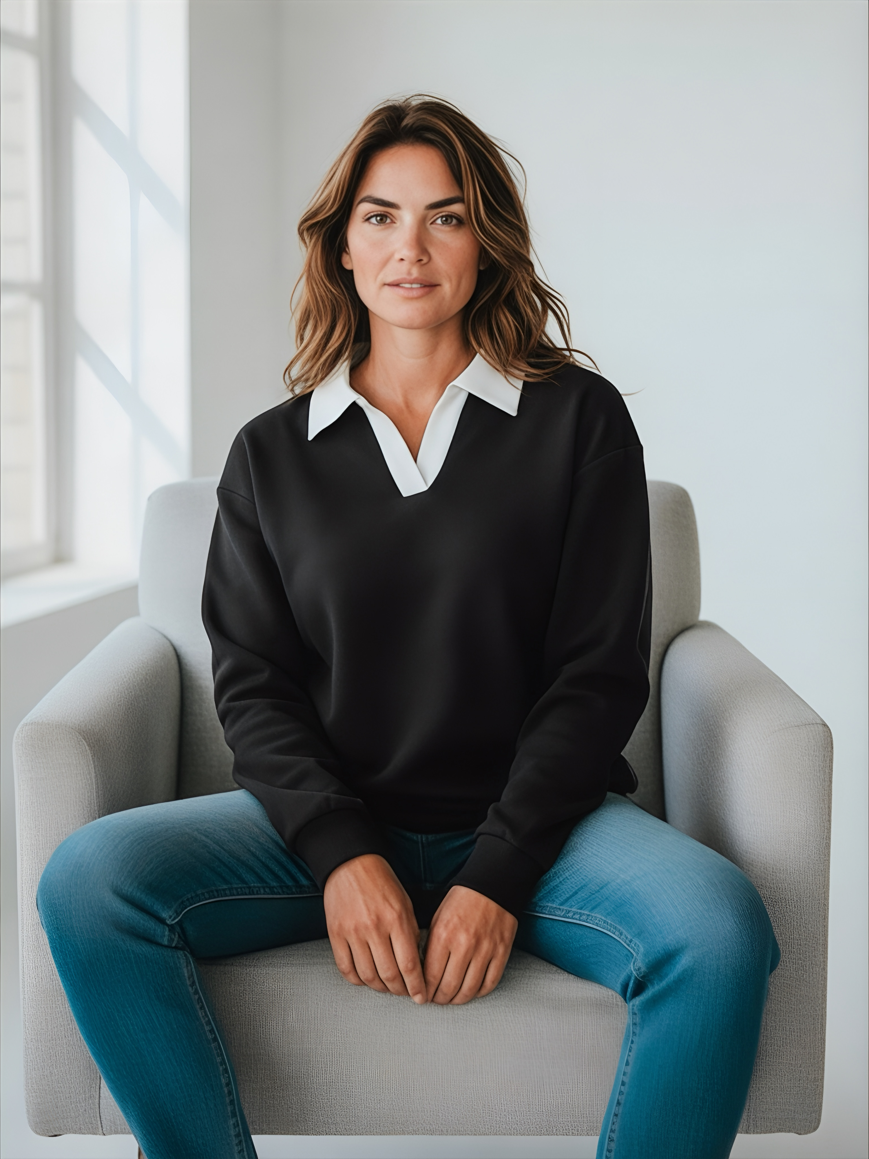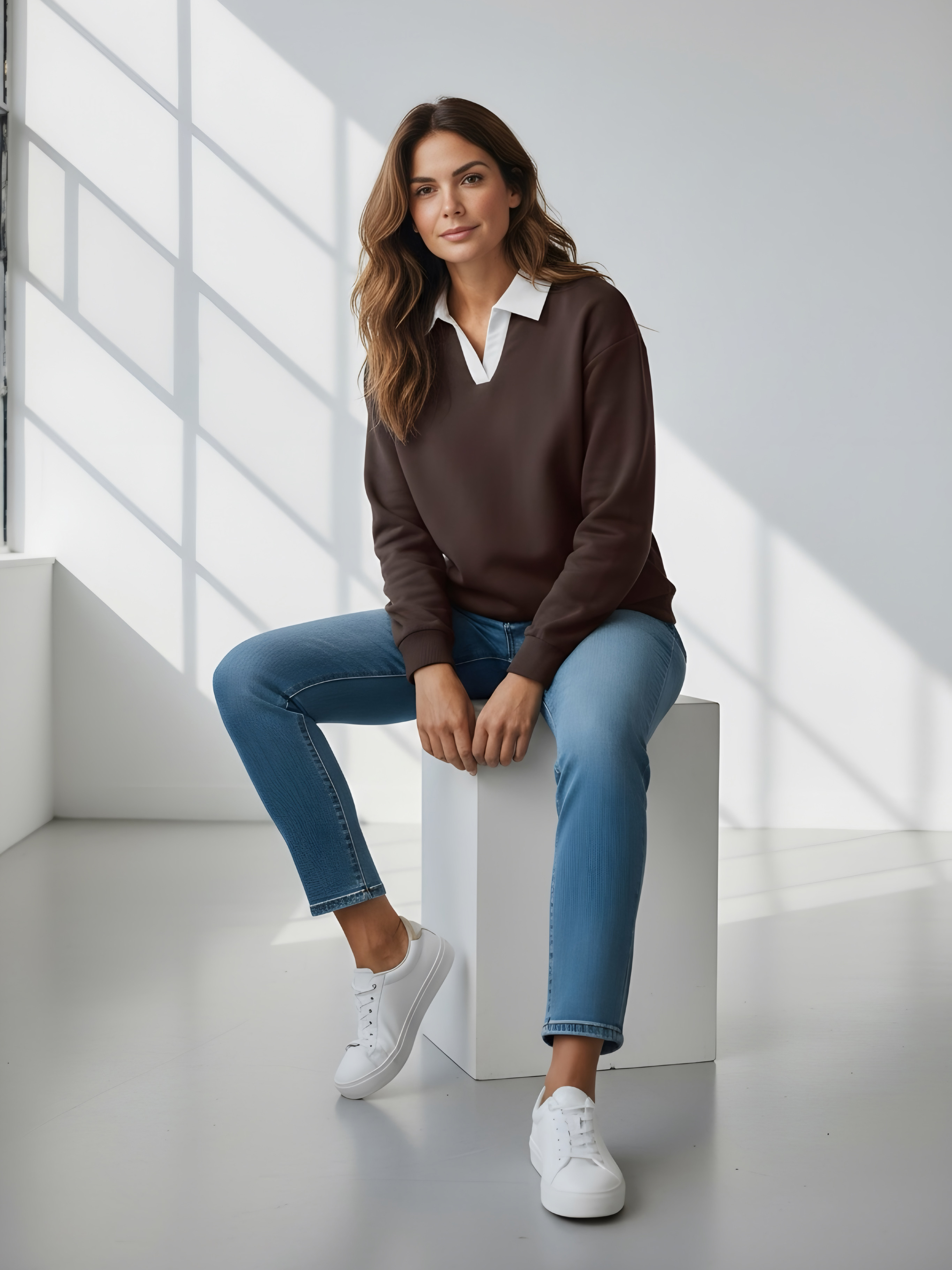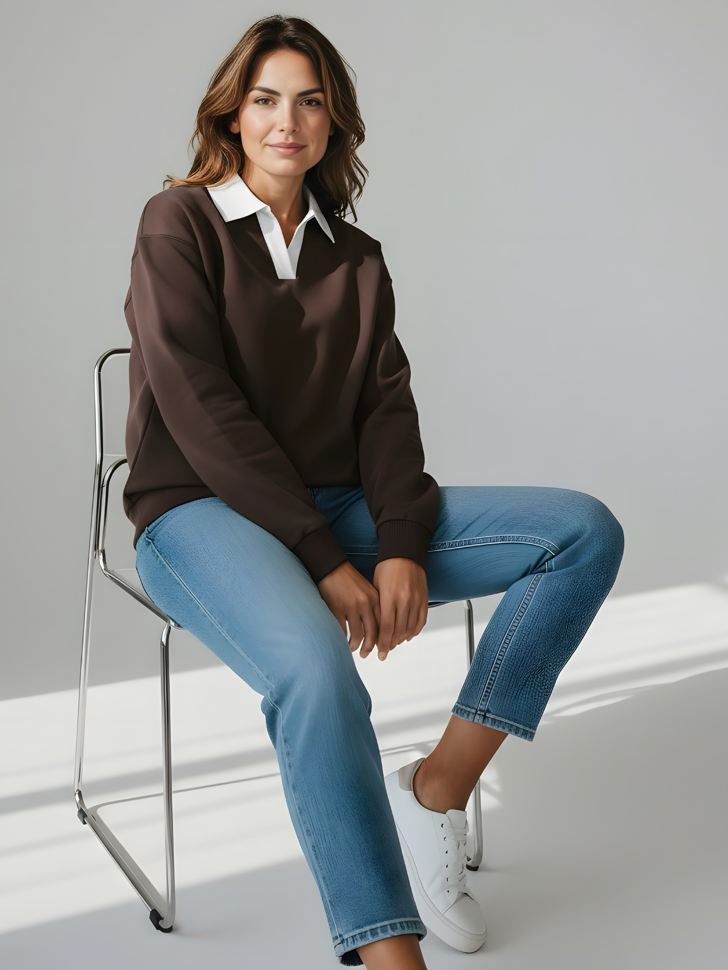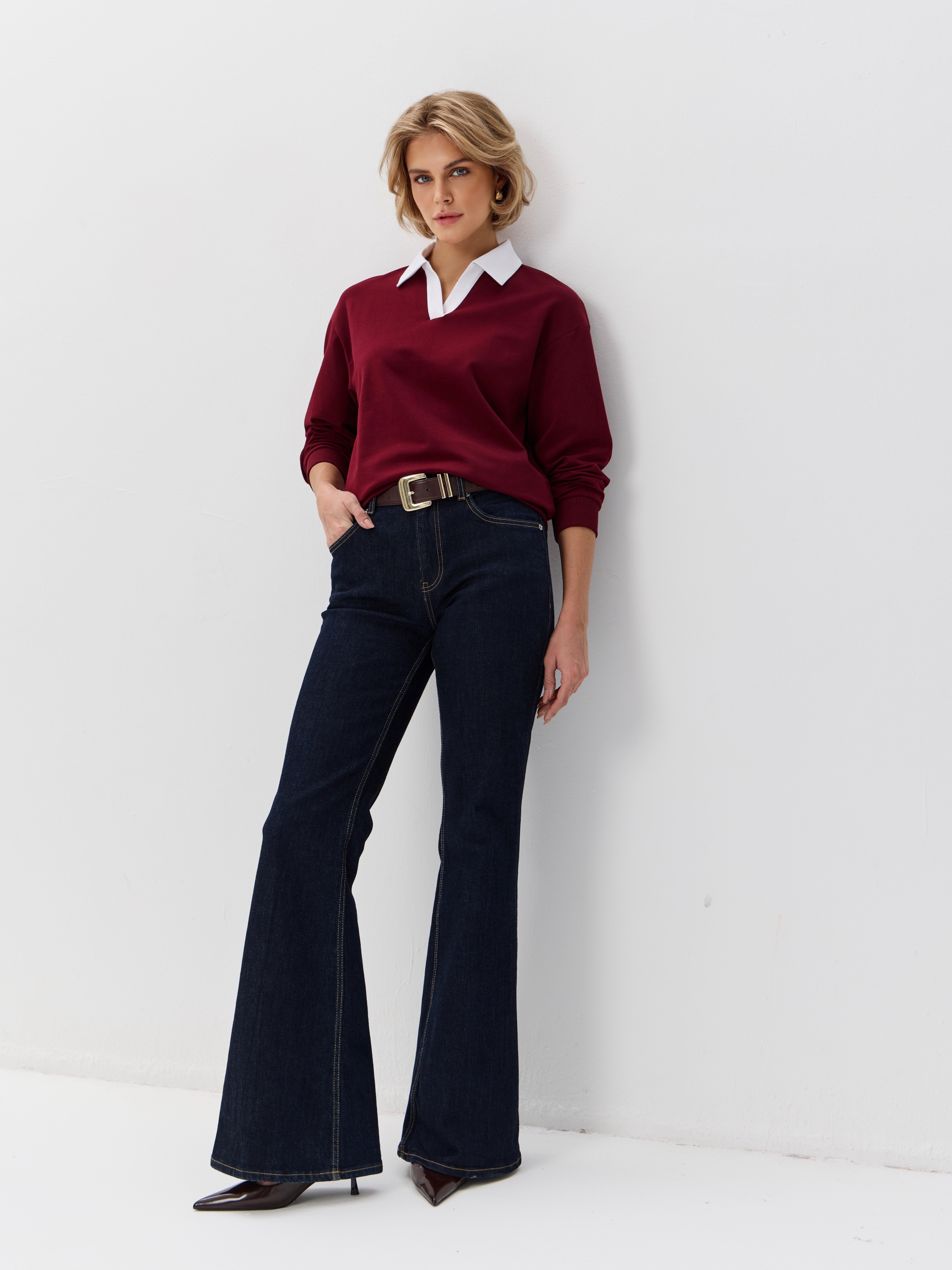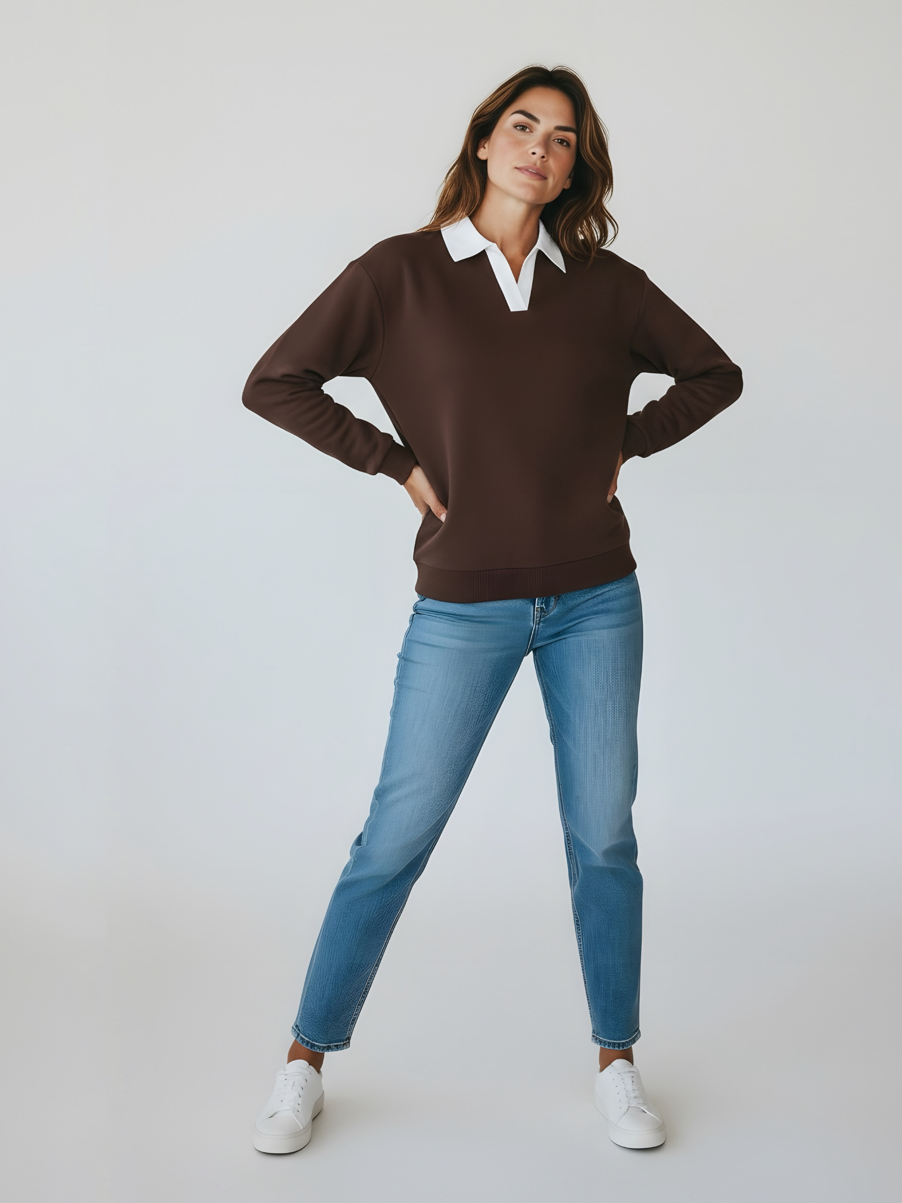Джемпер с рубашечным воротником поло - современный элегантный уют. Откройте для себя идеальный баланс комфорта и стиля — женский джемпер с контрастным белым воротником‑поло. Это не просто кофта, а настоящая находка для тех, кто ценит в одежде продуманные детали и универсальность. Модель сочетает уют классического свитшота и лаконичность рубашки благодаря контрастному белому воротнику. Такой акцент мгновенно преображает образ, добавляя ему свежести и изысканности. Джемпер выполнен из хлопкового футера 2-нитки с добавлением эластана. Это значит, что натуральная основа дарит комфорт и позволяет коже «дышать», а эластан обеспечивает идеальную посадку по фигуре и устойчивость к деформации. Материал приятен к телу и сохраняет форму даже после множества стирок. Этот джемпер с эффектом двойки легко впишется в любой гардероб: для офиса и школы — сочетайте с юбкой‑карандаш и лодочками или для прогулок — дополните джинсами и кроссовками. Женский джемпер поло HIGH TEMP - ваш новый базовый элемент с изюминкой. Ведь он подчёркивает женственность благодаря контрастному воротнику; сохраняет тепло в прохладную погоду; выглядит актуально в любом сезоне. Подарите себе ощущение комфорта, которое не придётся жертвовать ради стиля. Этот джемпер — ваш ключ к безупречным образам на каждый день.