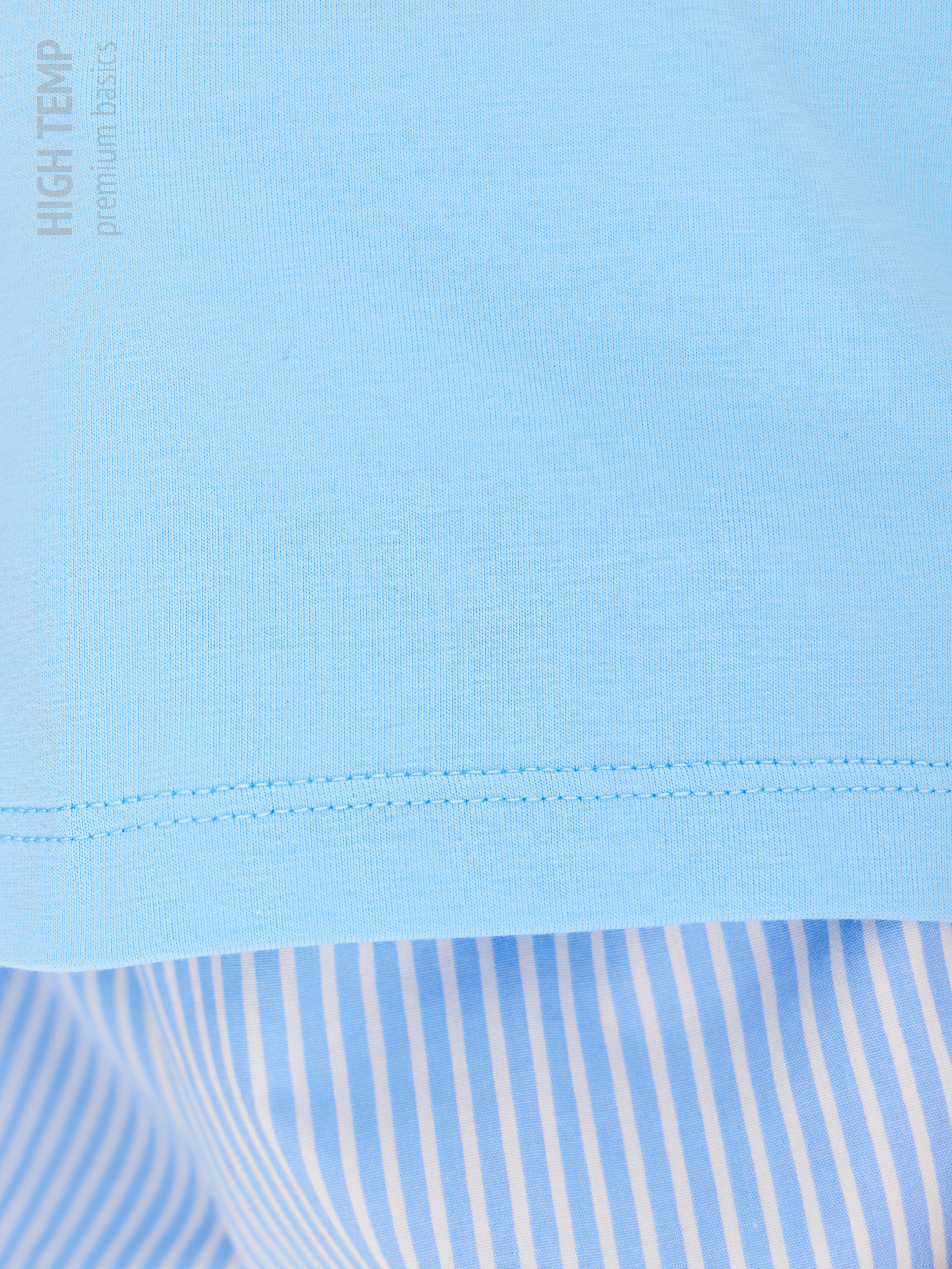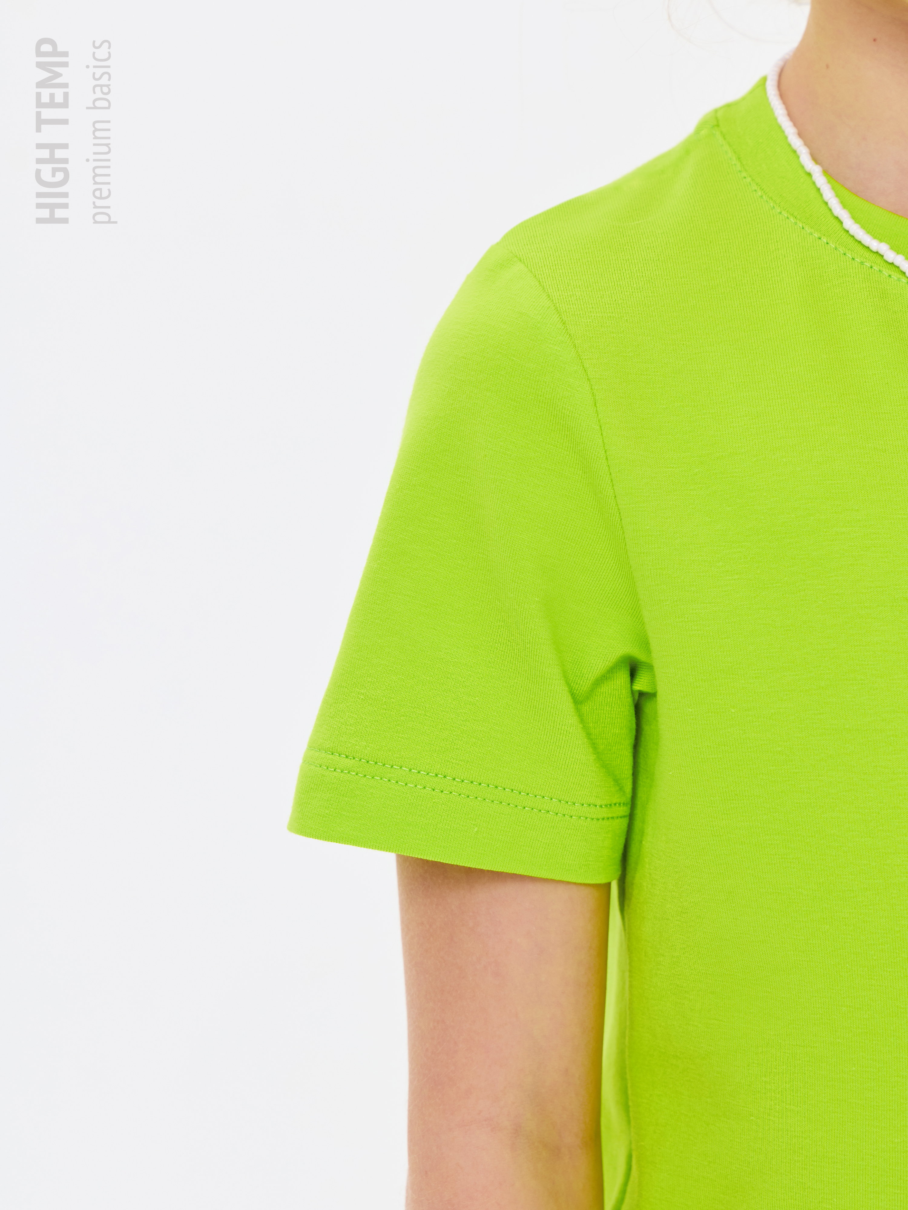 Трикотажная футболка изготовлена из мягкого, гипоаллергенного хлопка, который не вызывает раздражения и идеально подходит для чувствительной кожи. А эластан позволяет изделию служить долго: оно не дает усадку, не пилингуется, у него не «ведет» швы.
