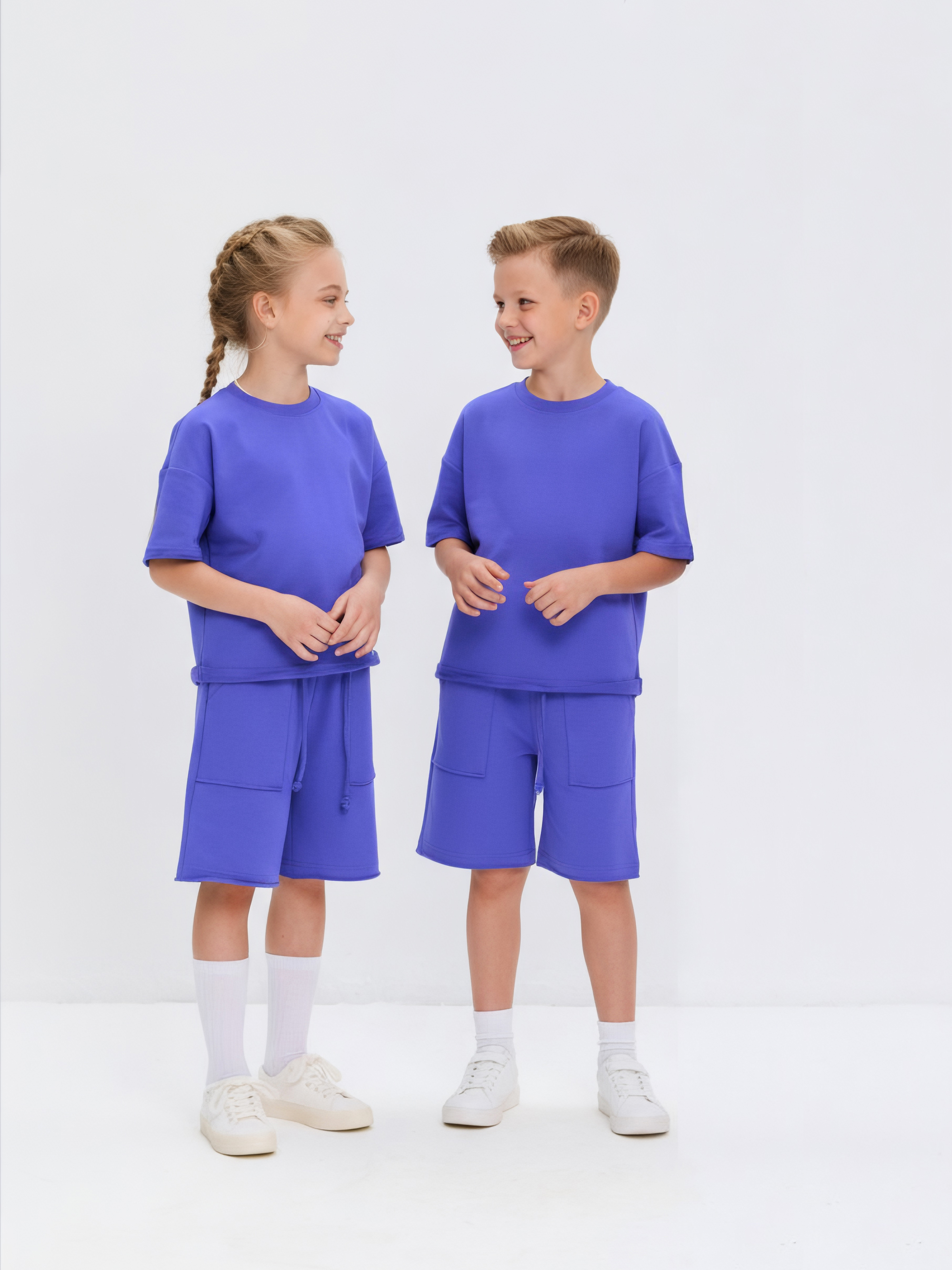 Летний костюм для девочки и мальчика выполнен из износостойкого футера 2-нитки (92% хлопок и 8% эластан), который обеспечивает легкость, приятные ощущения и свободу движений. Он идеально подходит для прогулок, игр, семейных выездов и спортивных мероприятий. Этот детский комплект одежды в отпуск станет незаменимой частью гардероба вашего ребенка.