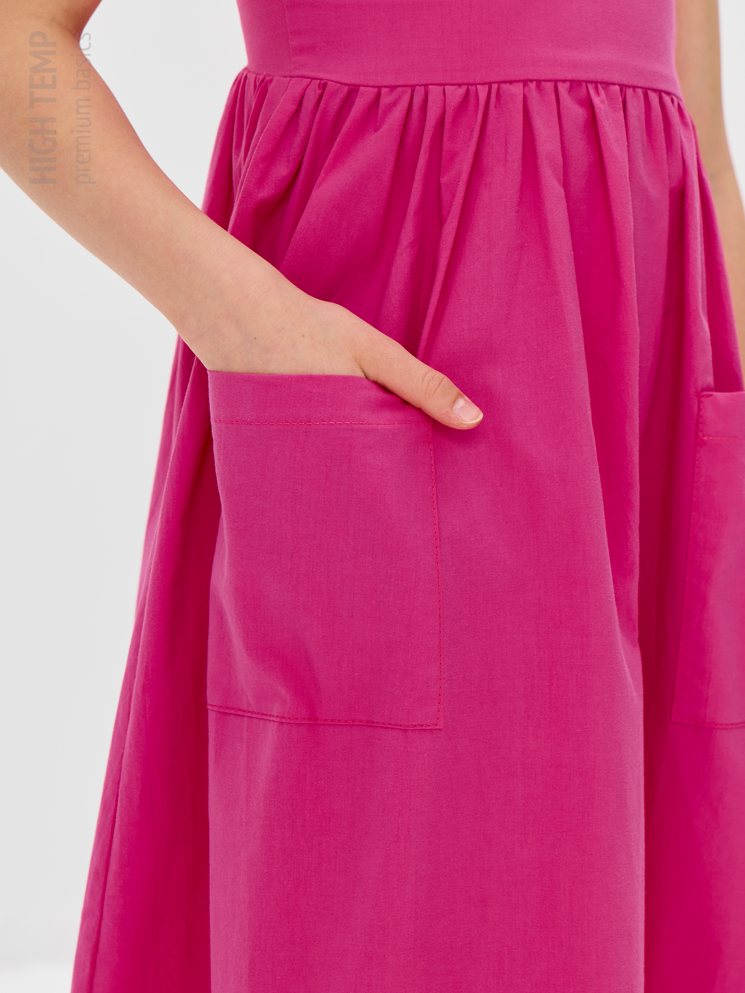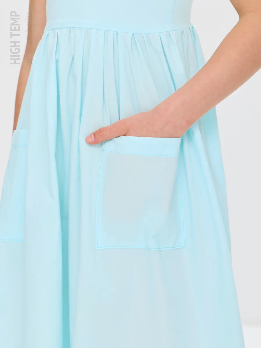 Легкий дышащий летний сарафан миди длины с глубокими накладными карманами — настоящий символ комфорта и стиля. Его воздушный дизайн и мягкая ткань из натурального хлопка создают ощущение легкости и свободы, позволяя радоваться каждому моменту.