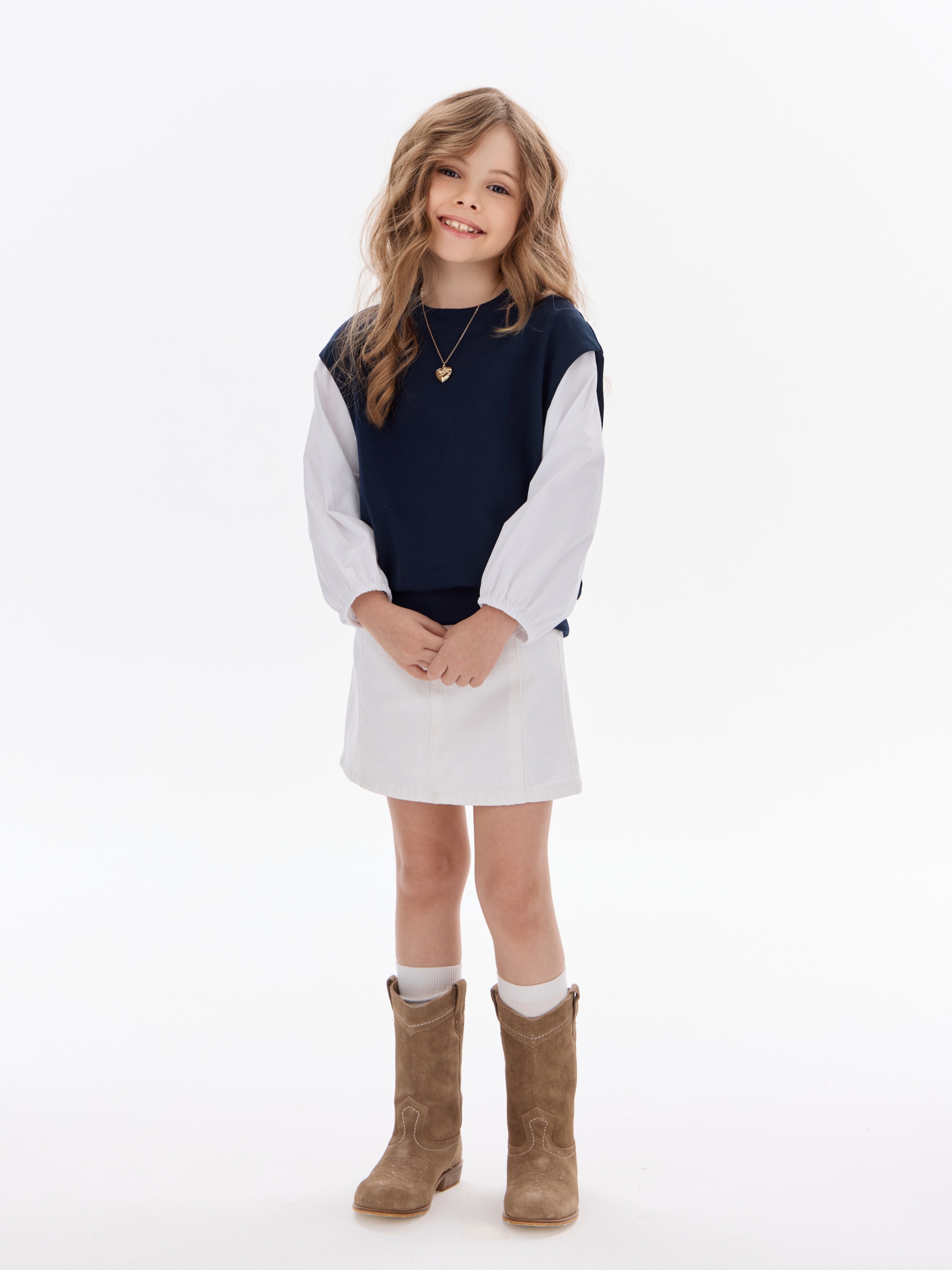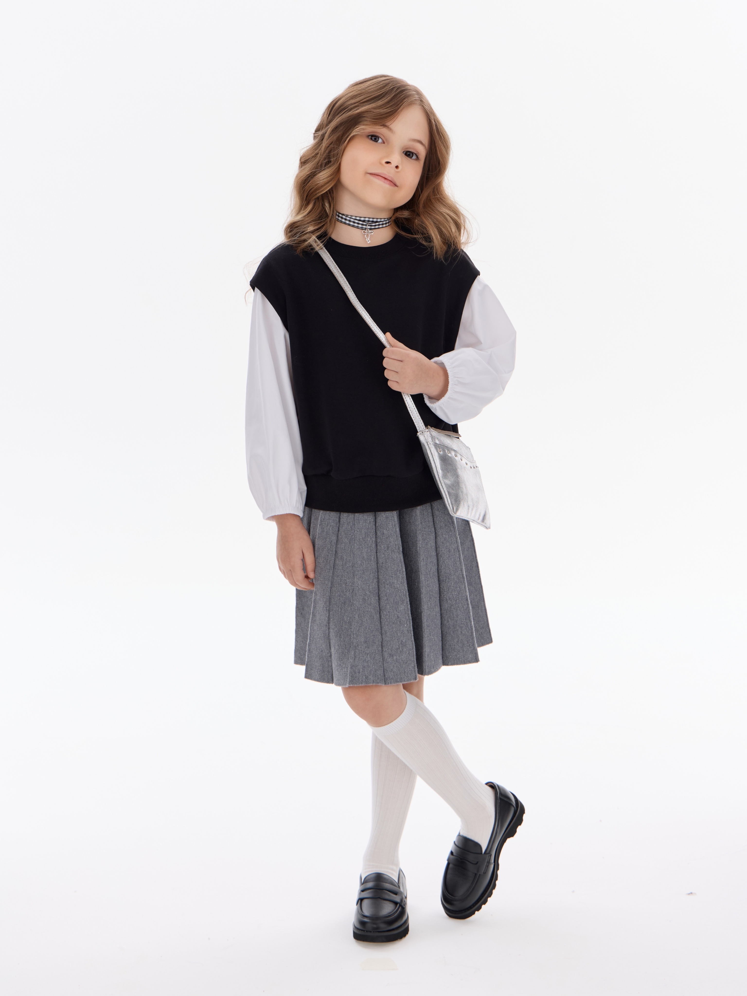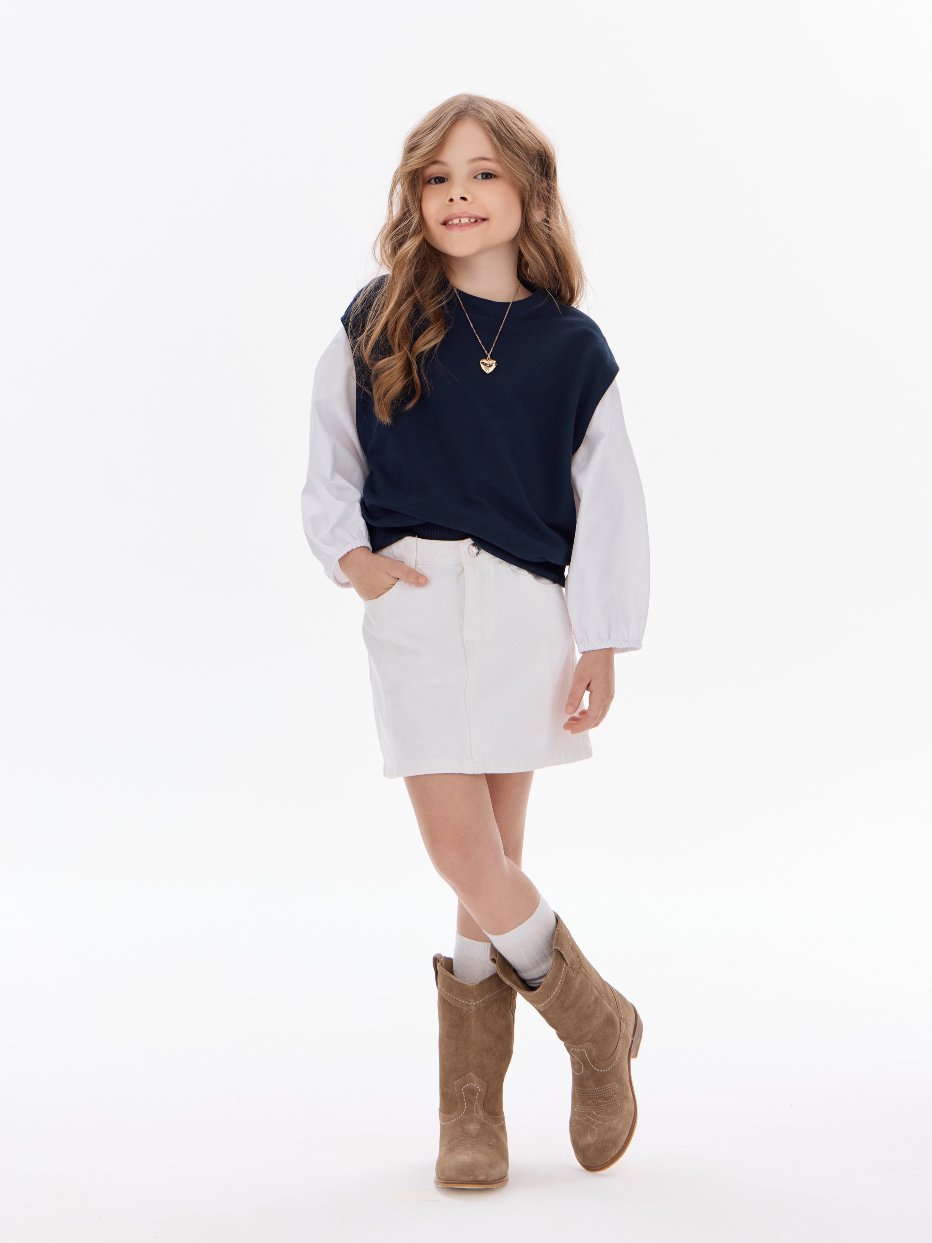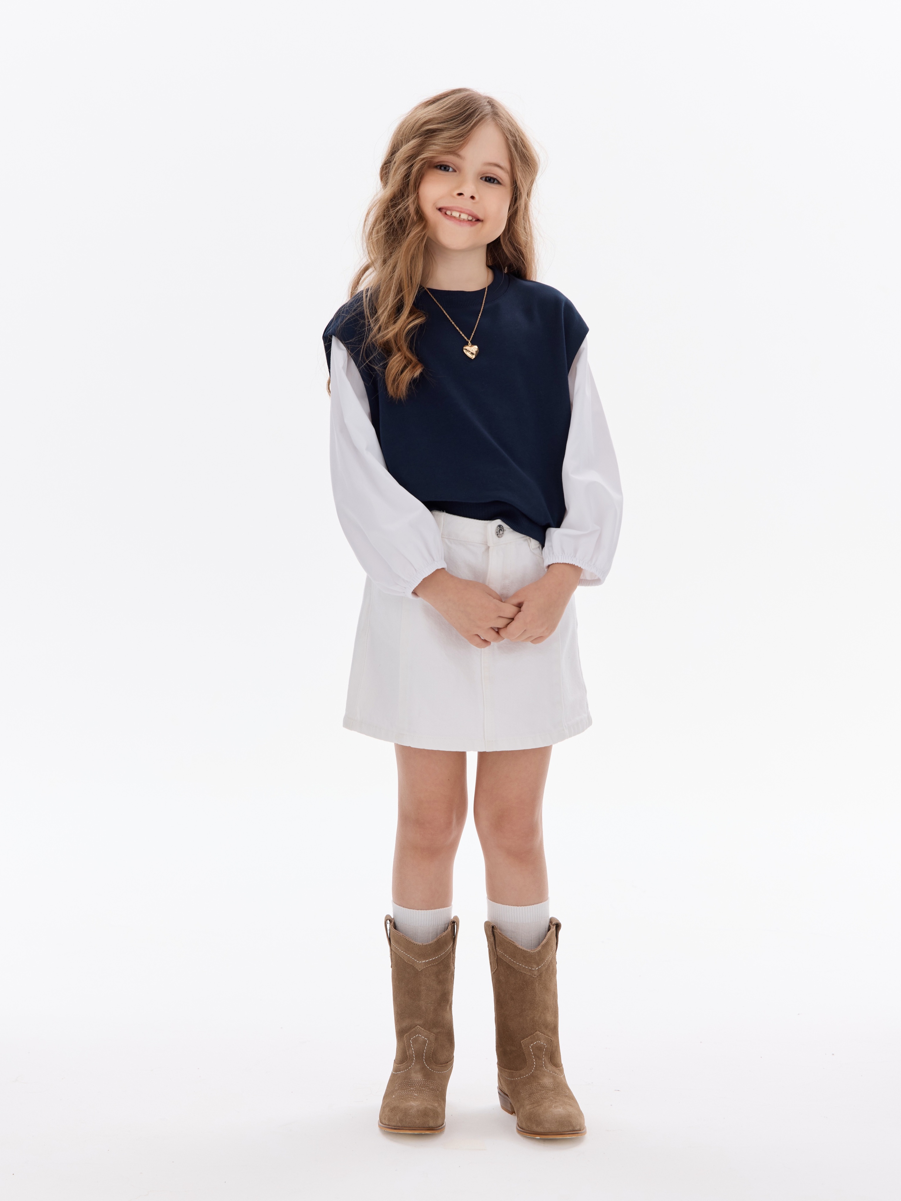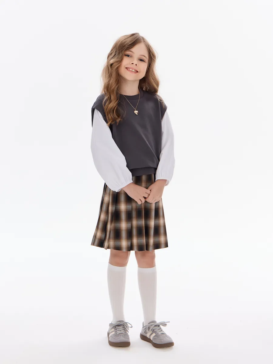 Этот свитшот-рубашка станет любимой кофтой на все случаи: в школу— стильно сочетается с юбками, брюками или джинсами; на прогулку— тёплый и удобный, не мешает активным играм; на праздник— благодаря лаконичным белым рукавам выглядит нарядно, но без излишеств.