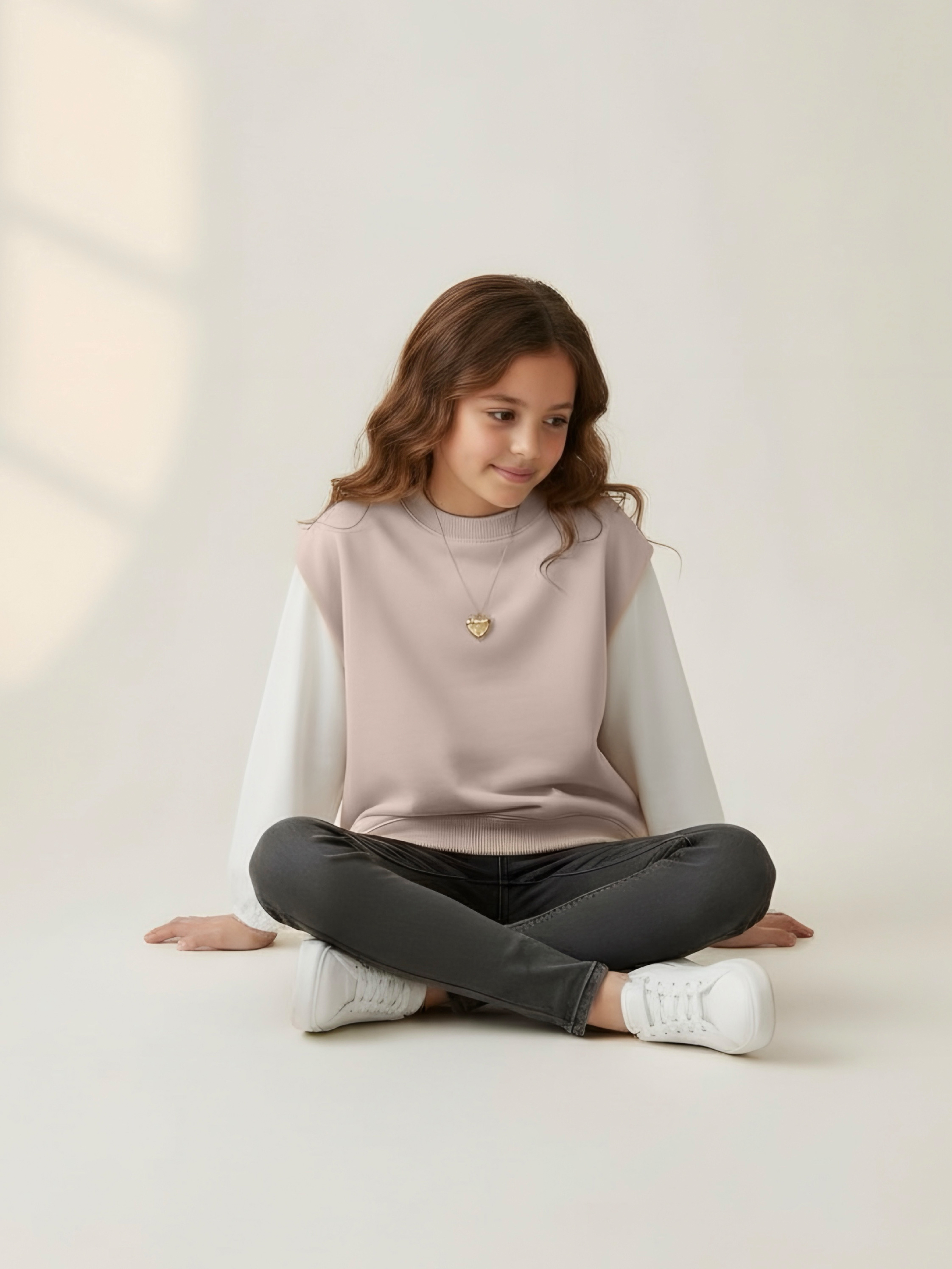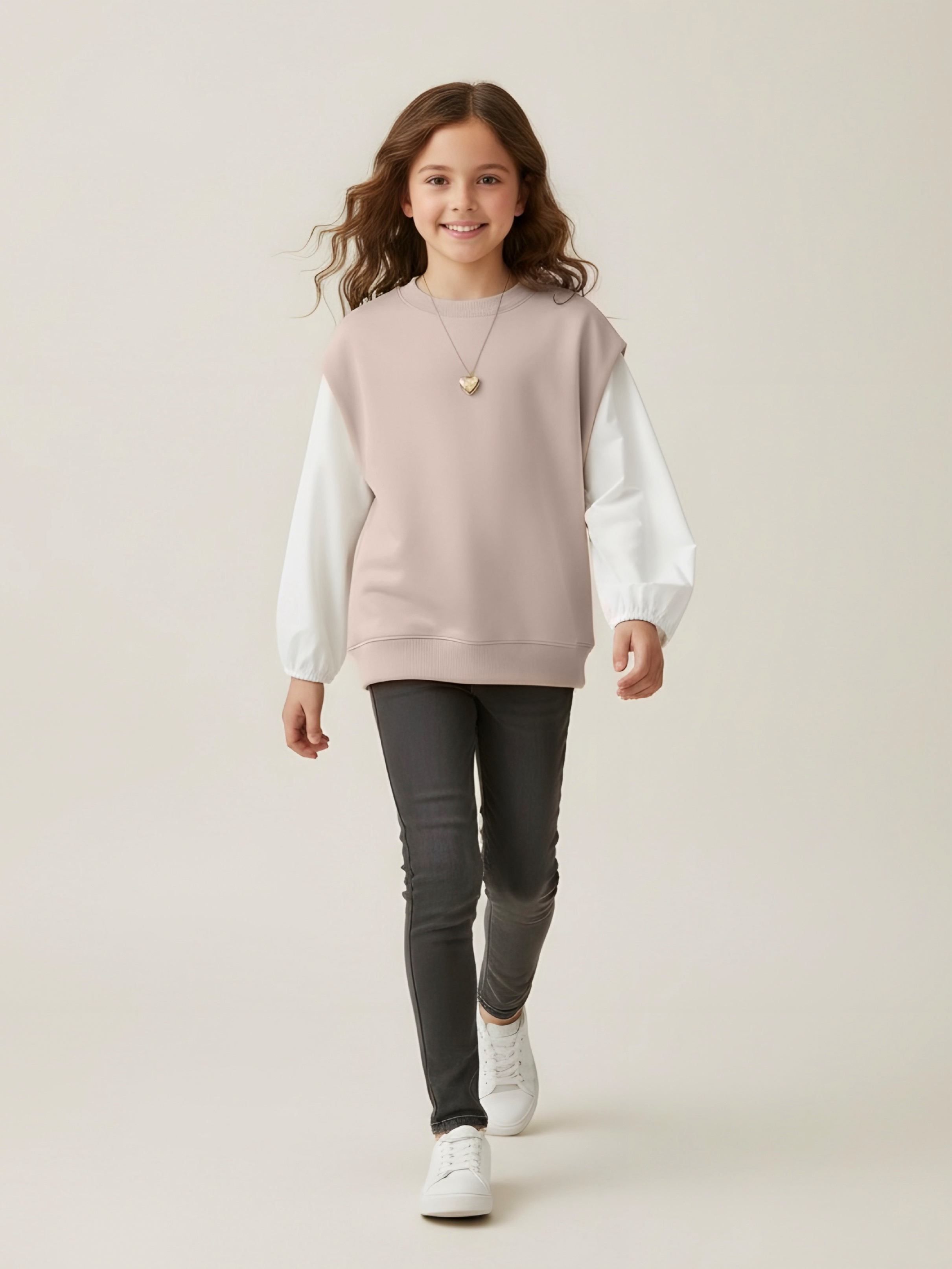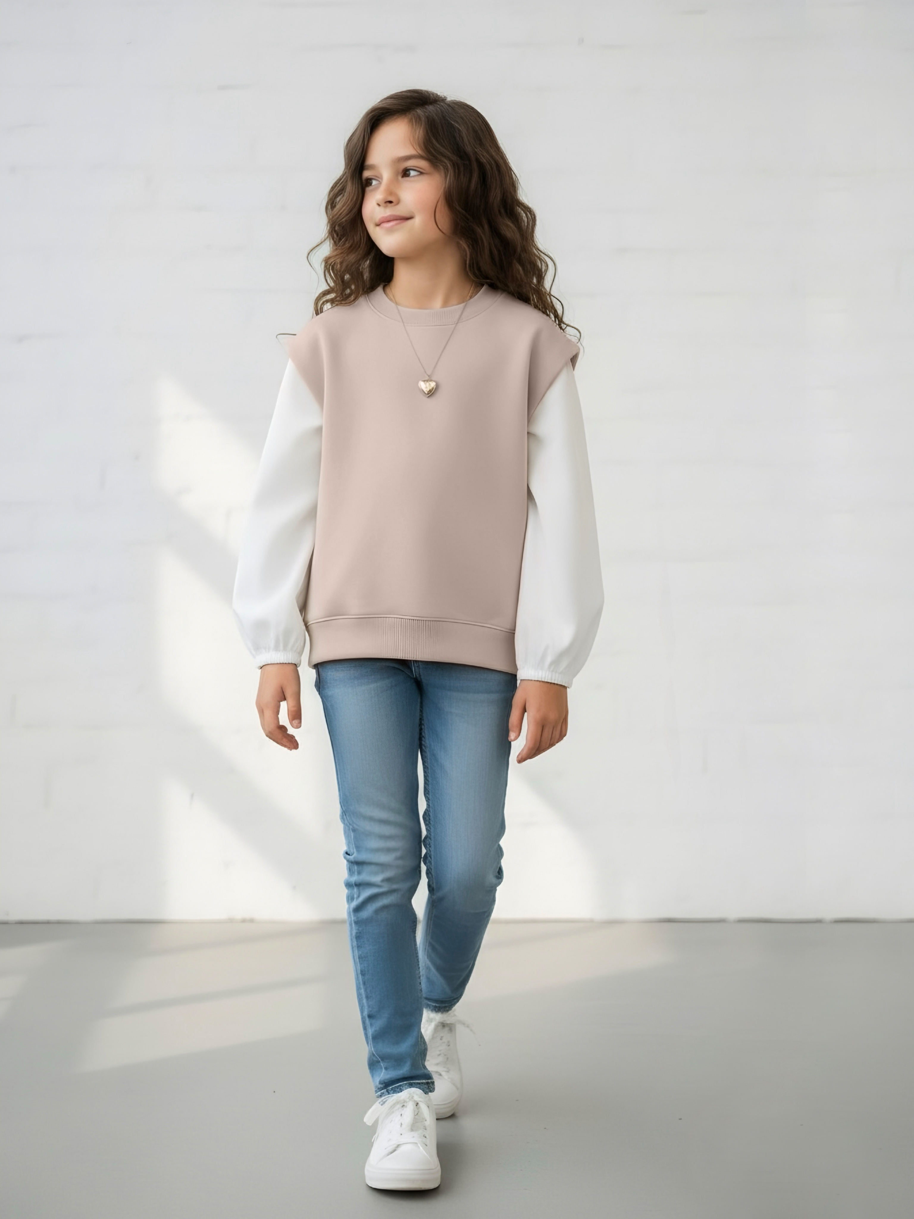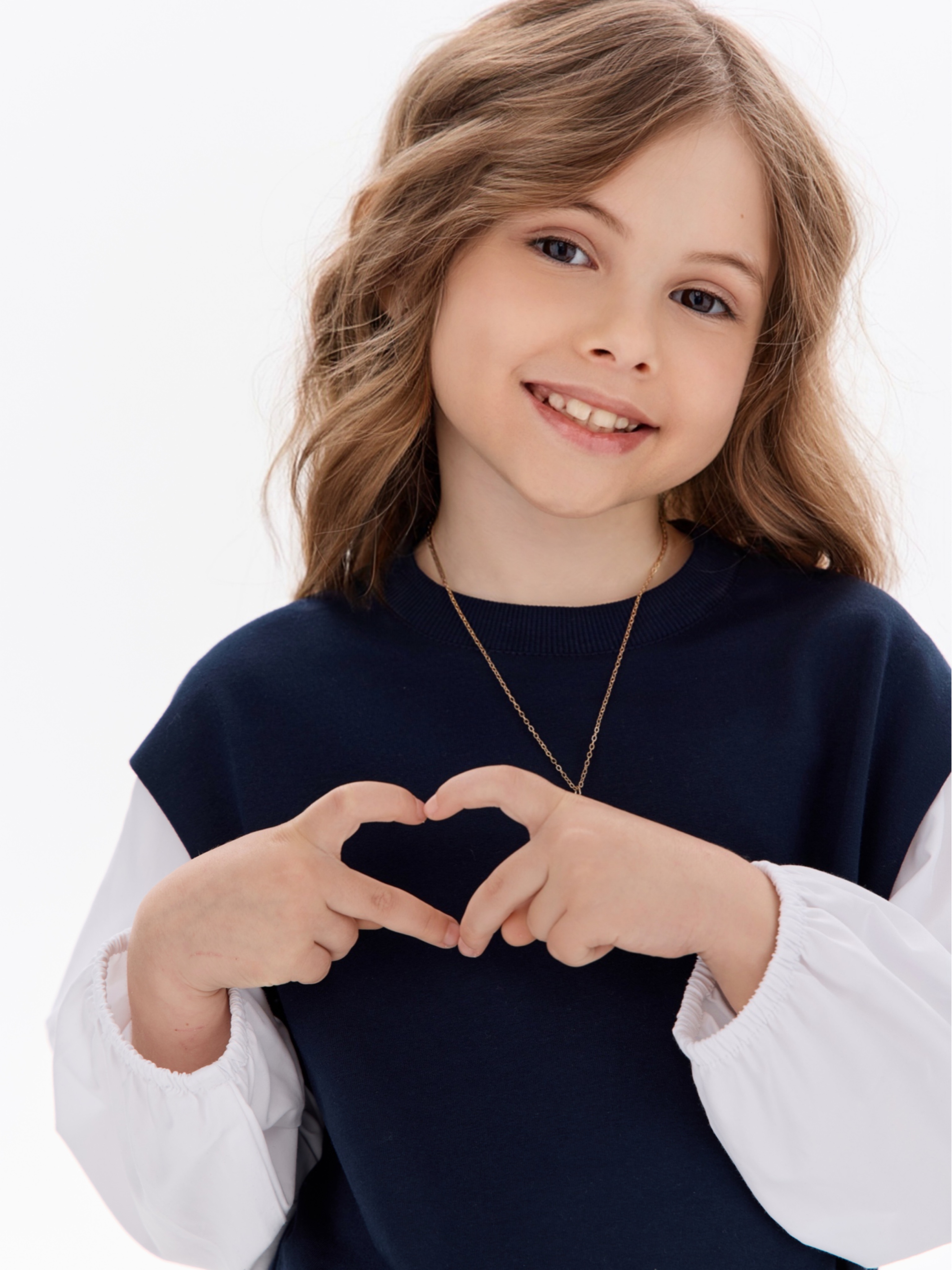 Этот свитшот-рубашка станет любимой кофтой на все случаи: в школу— стильно сочетается с юбками, брюками или джинсами; на прогулку— тёплый и удобный, не мешает активным играм; на праздник— благодаря лаконичным белым рукавам выглядит нарядно, но без излишеств.