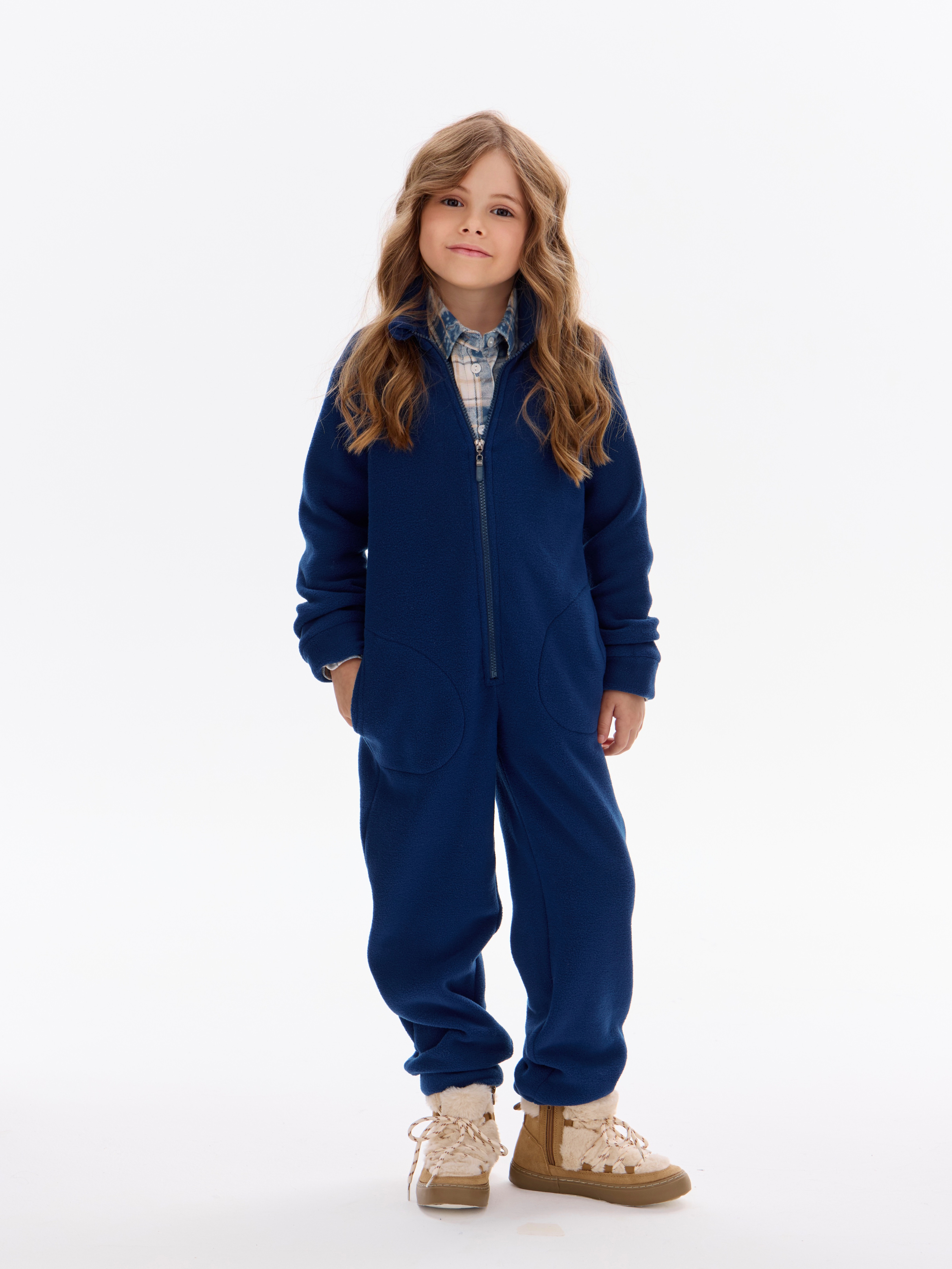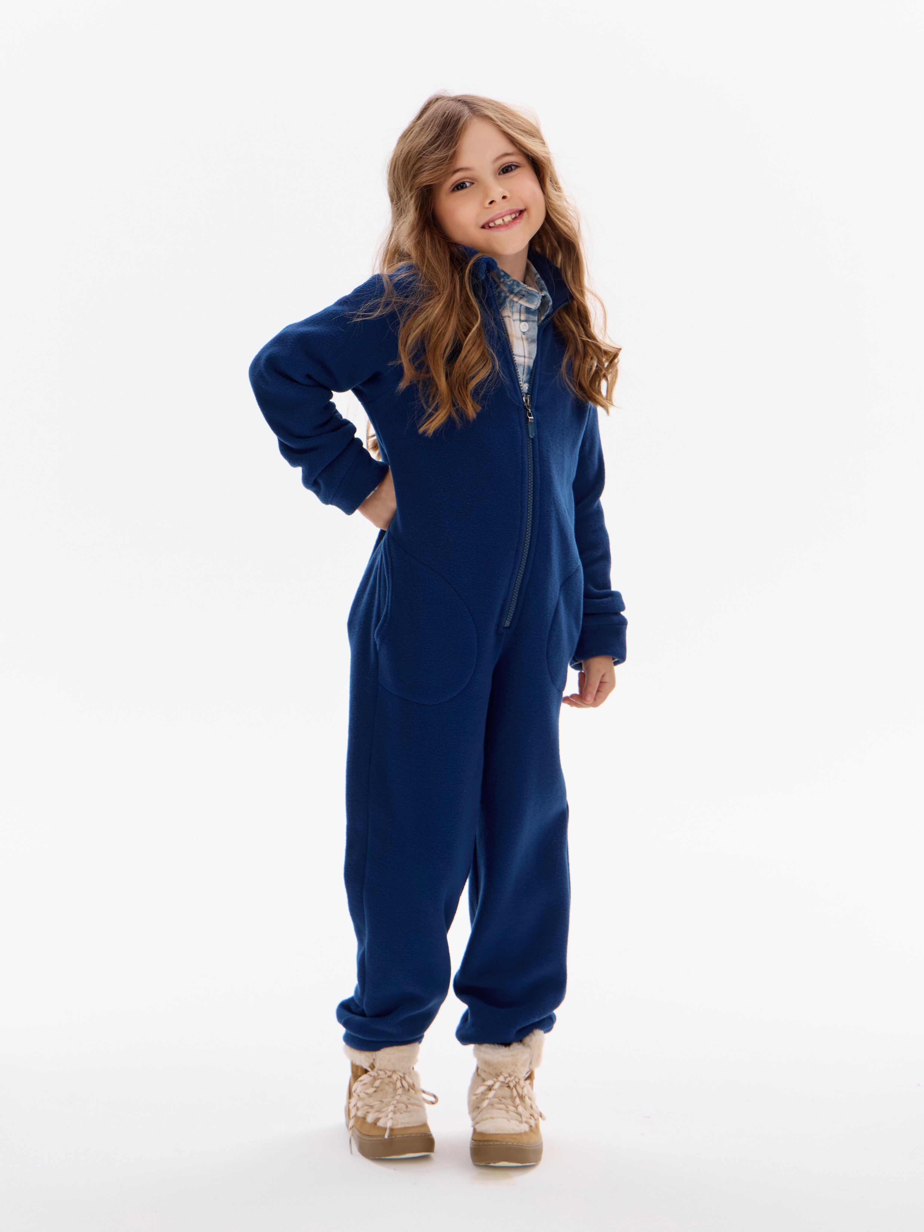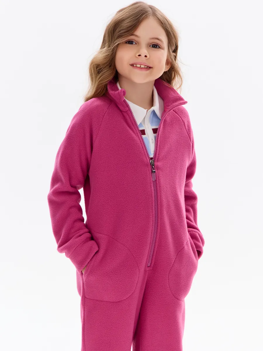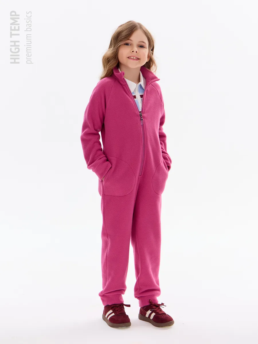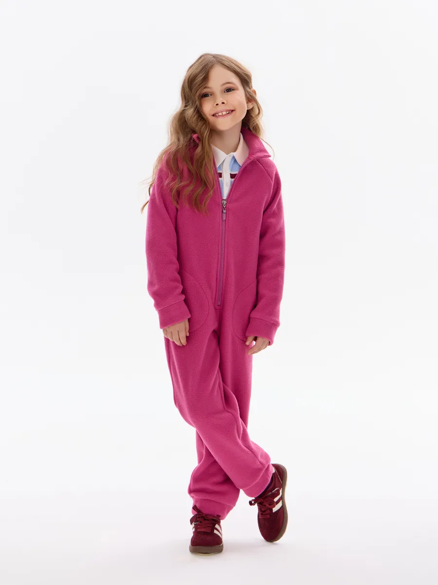 Комбинезон детский флис с резинкой на талии и глубокими карманами. Застежка на молнию. Воротник-стойка с защитным клапаном.