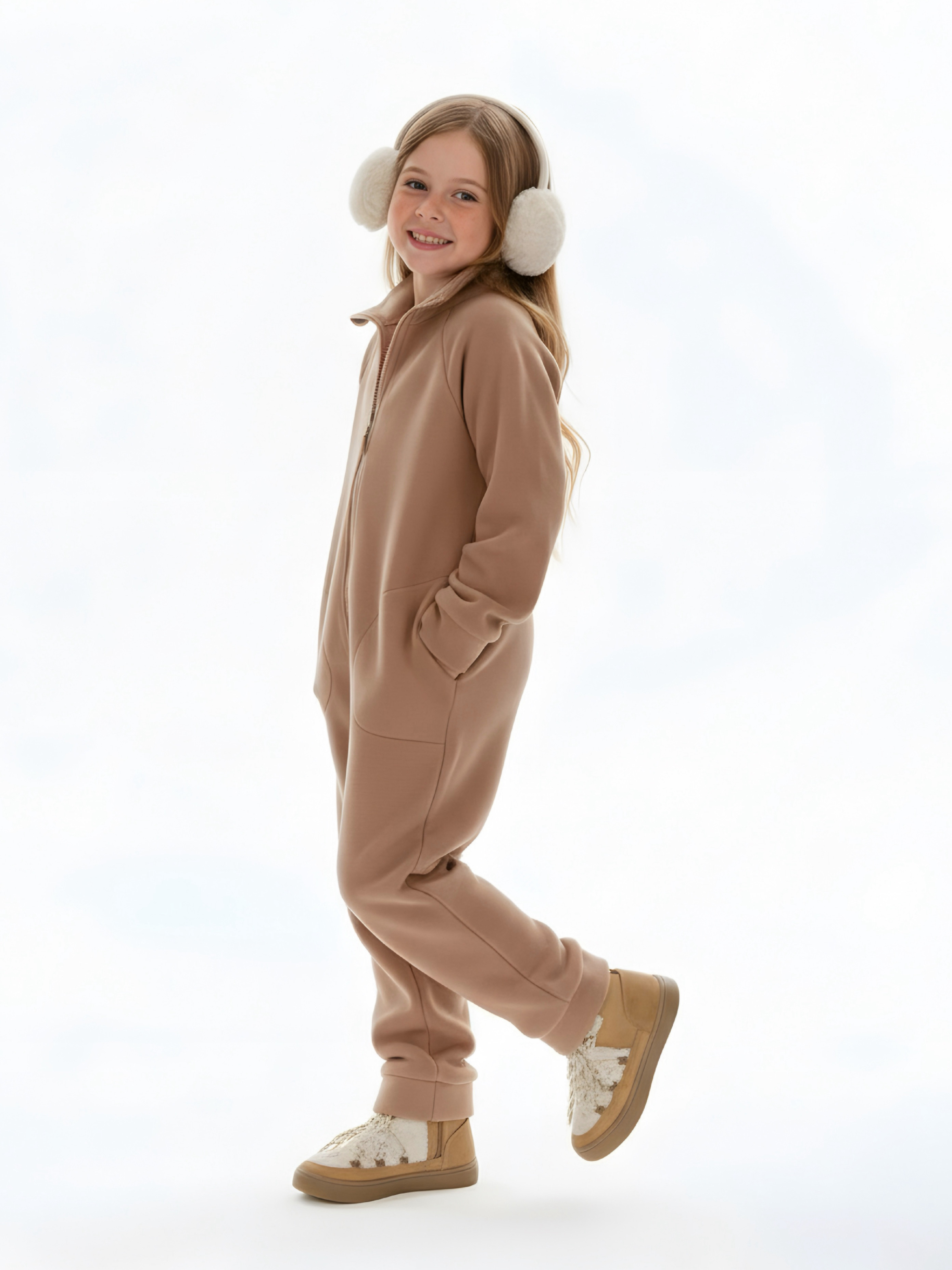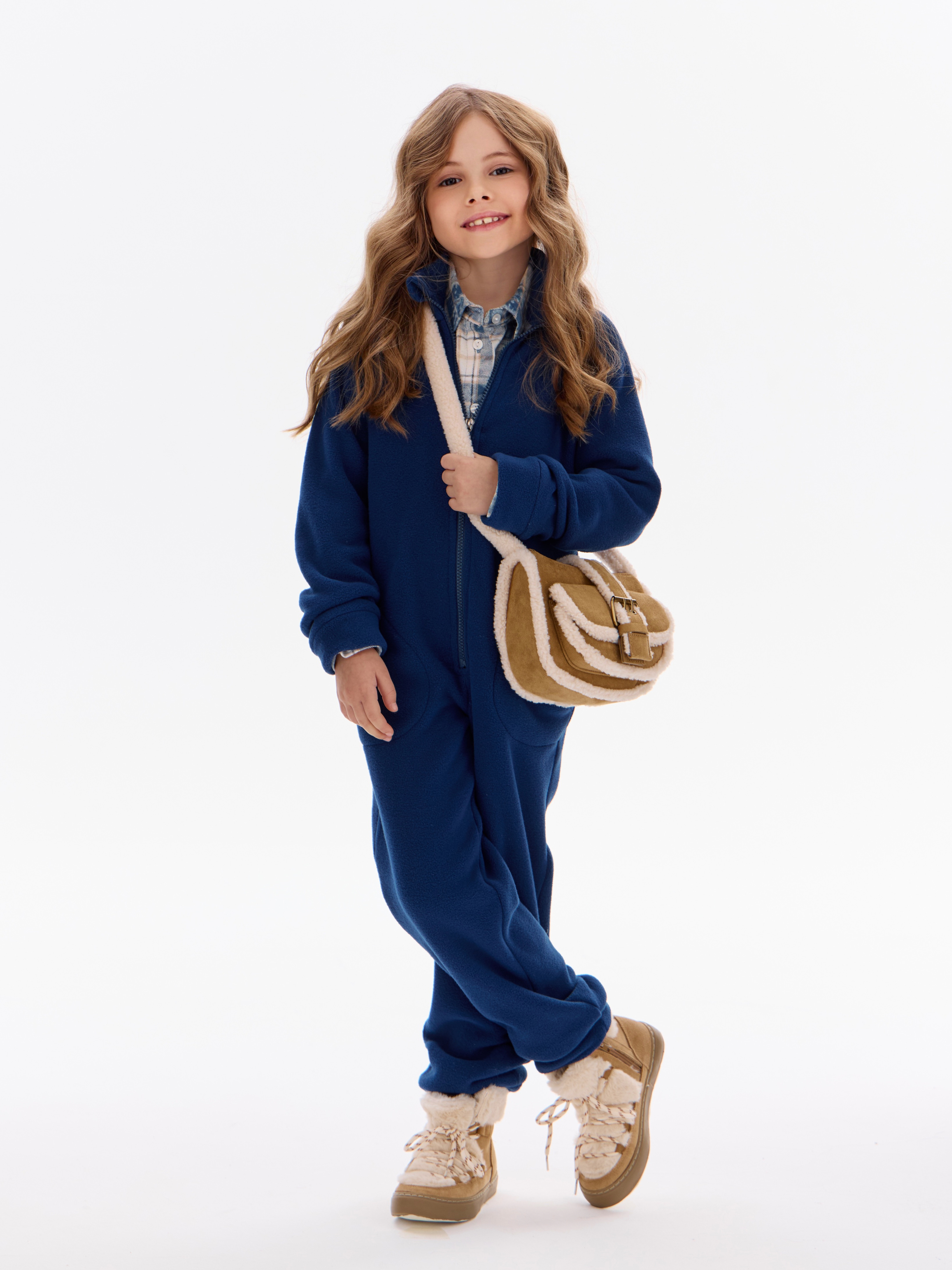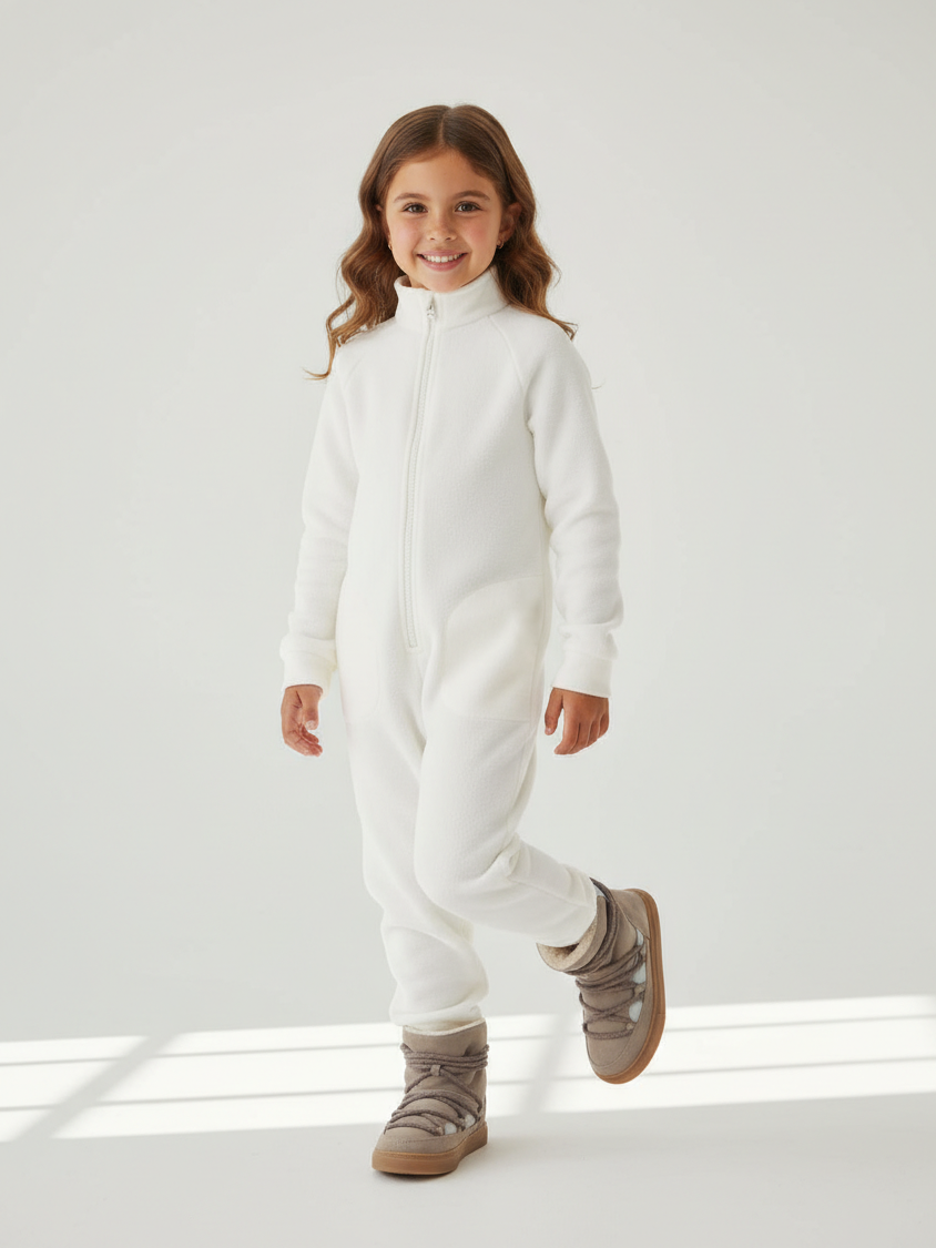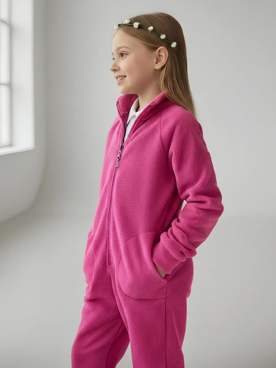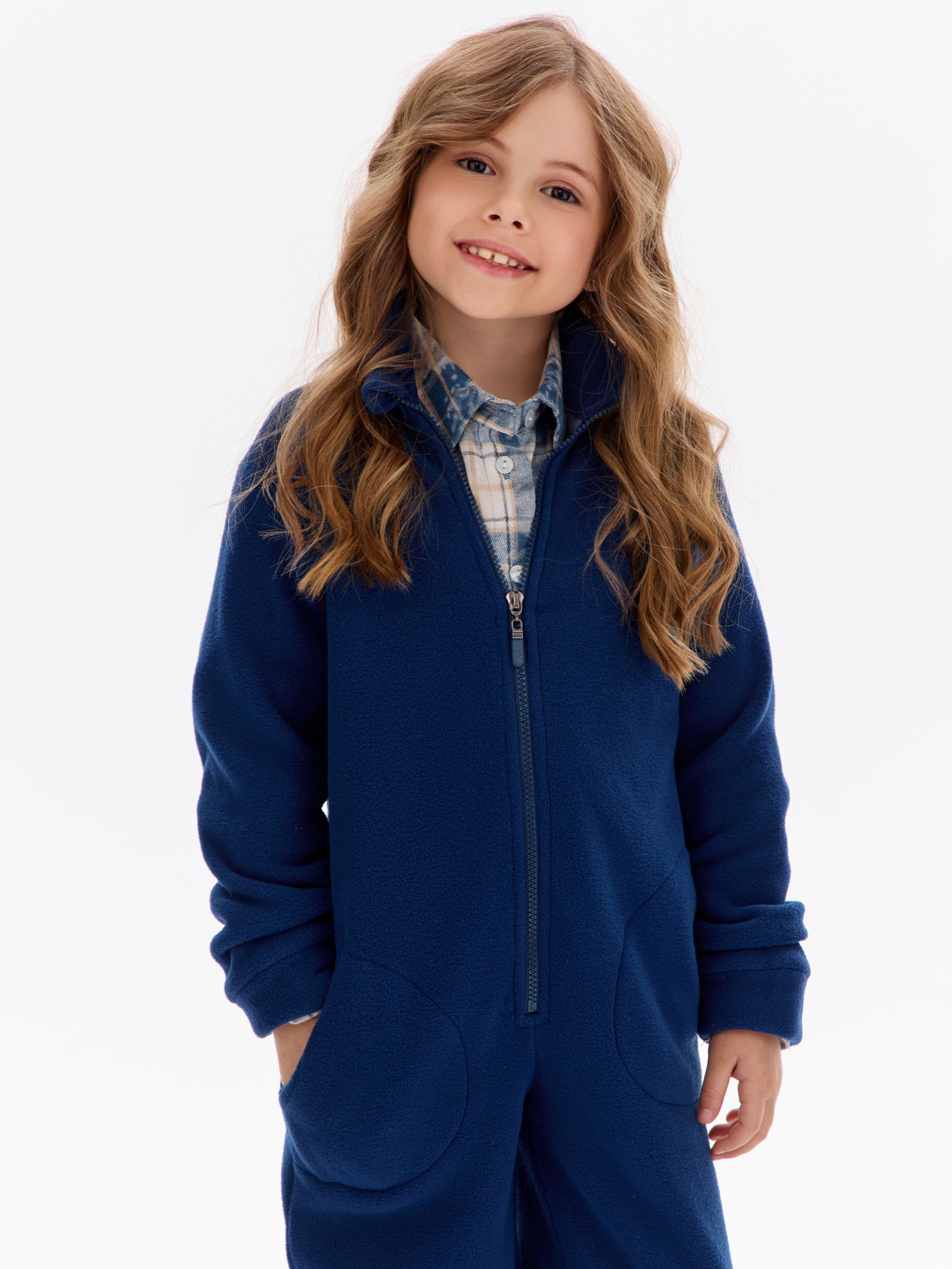 Комбинезон детский флис с резинкой на талии и глубокими карманами. Застежка на молнию. Воротник-стойка с защитным клапаном.