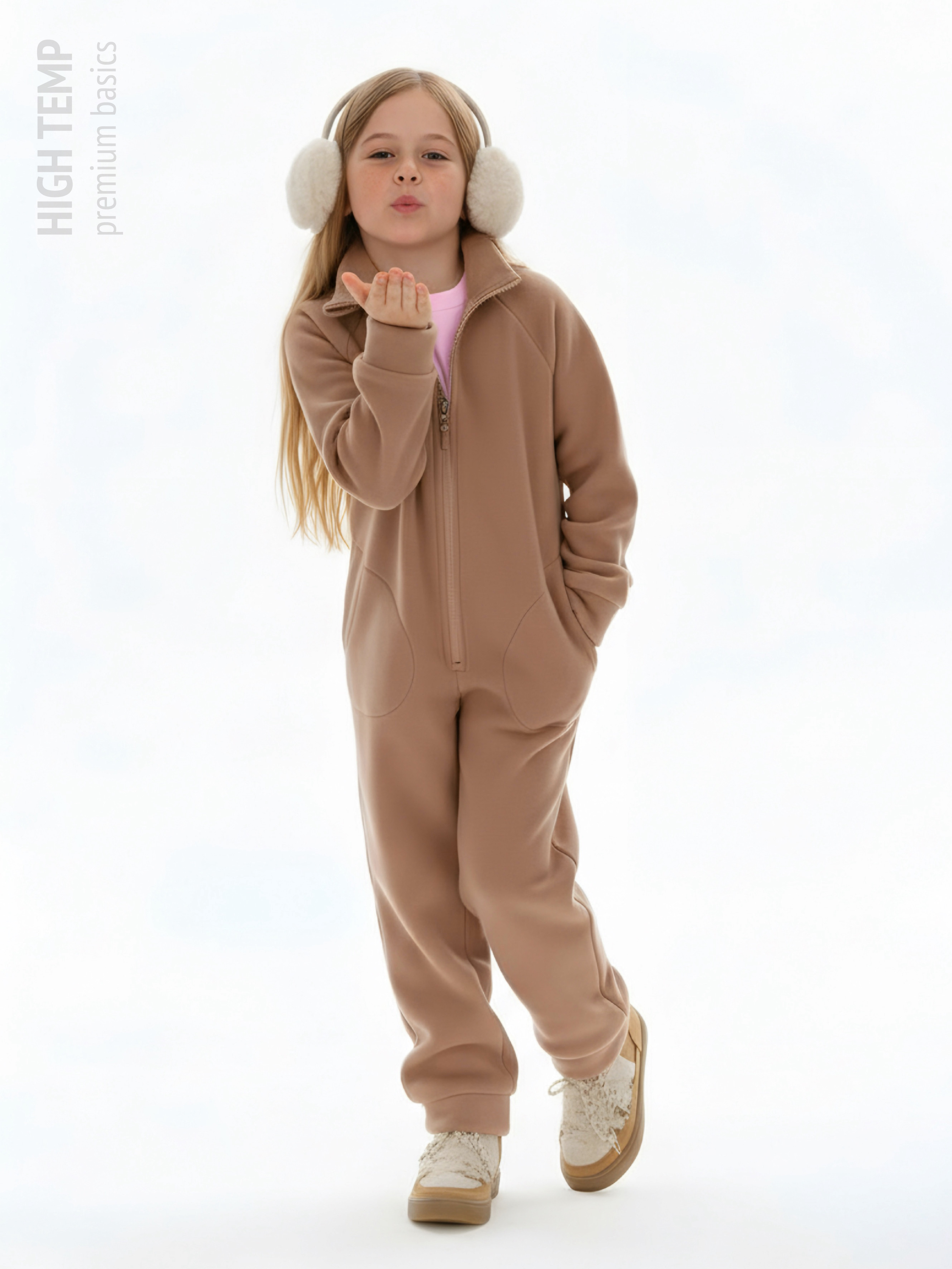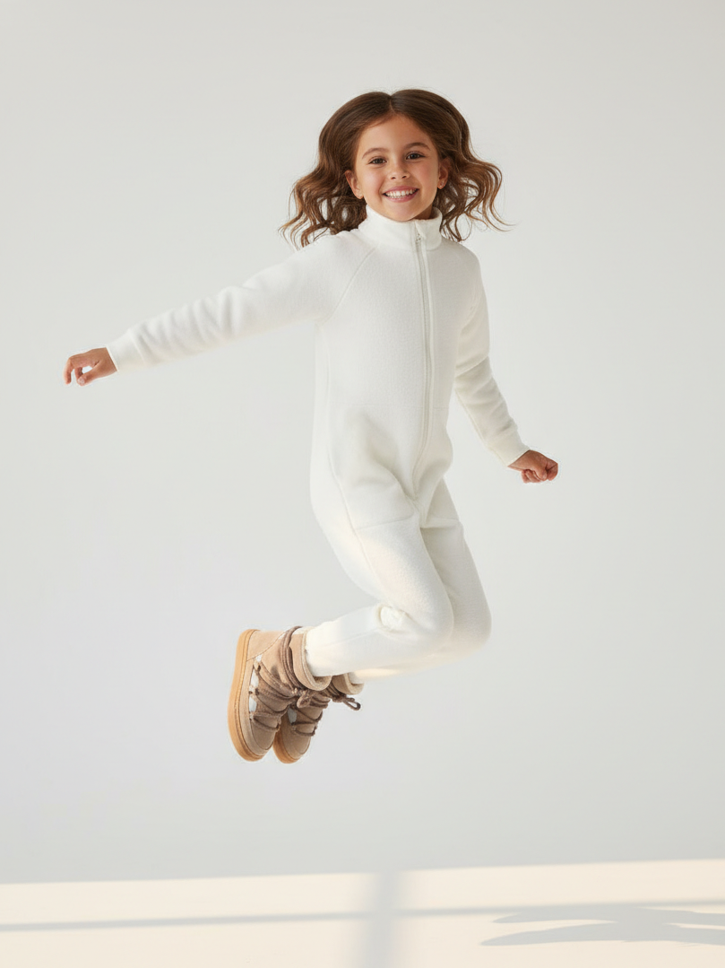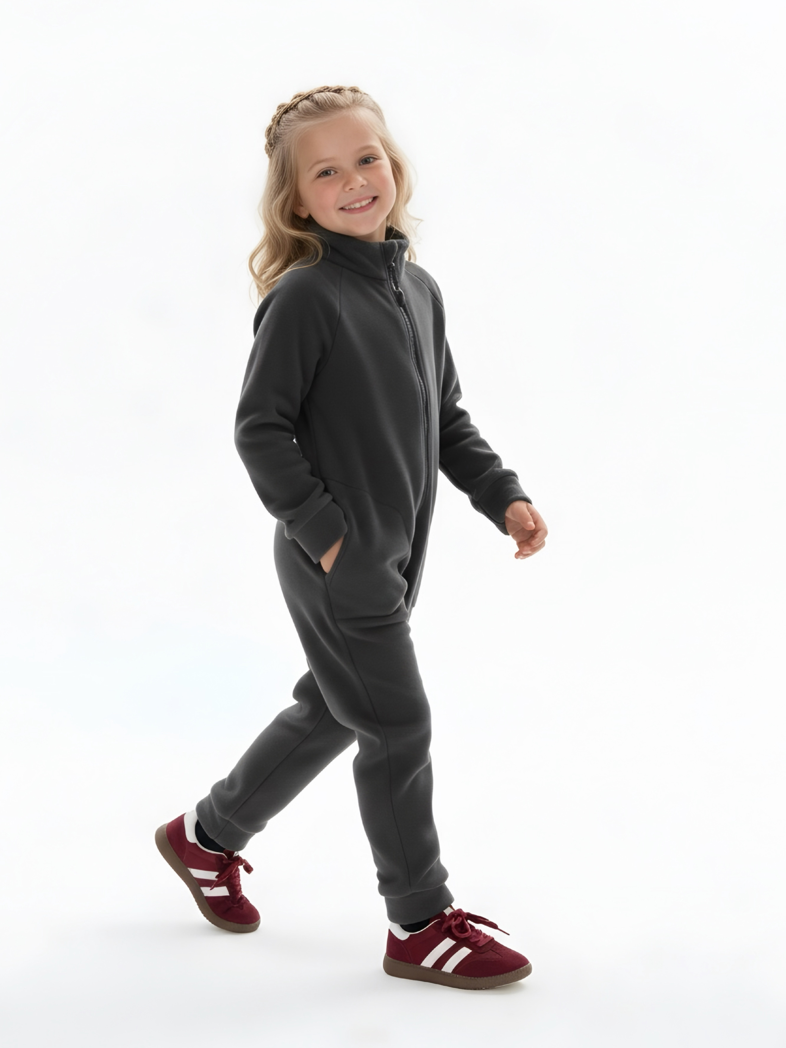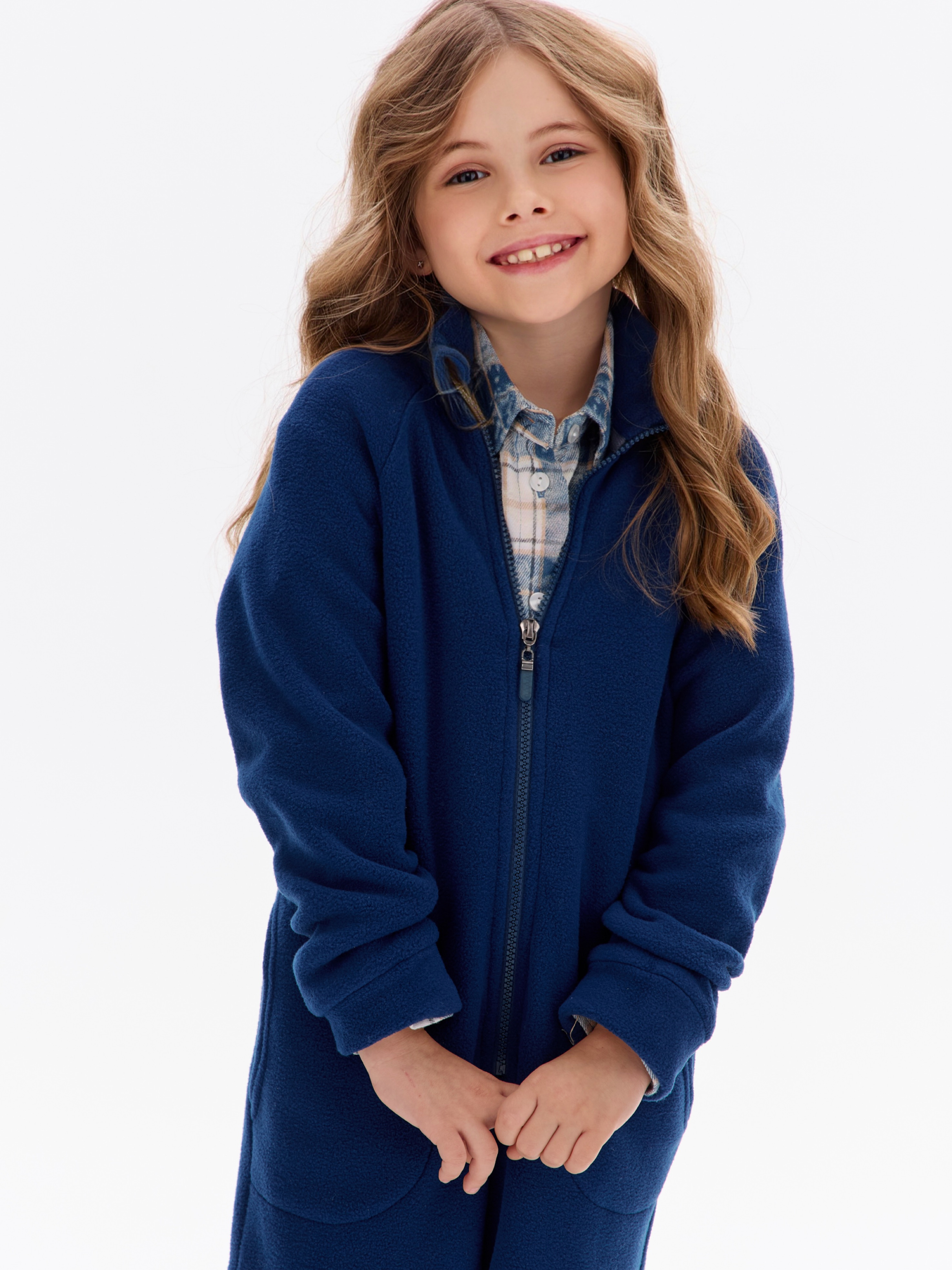 Комбинезон детский флис с резинкой на талии и глубокими карманами. Застежка на молнию. Воротник-стойка с защитным клапаном.