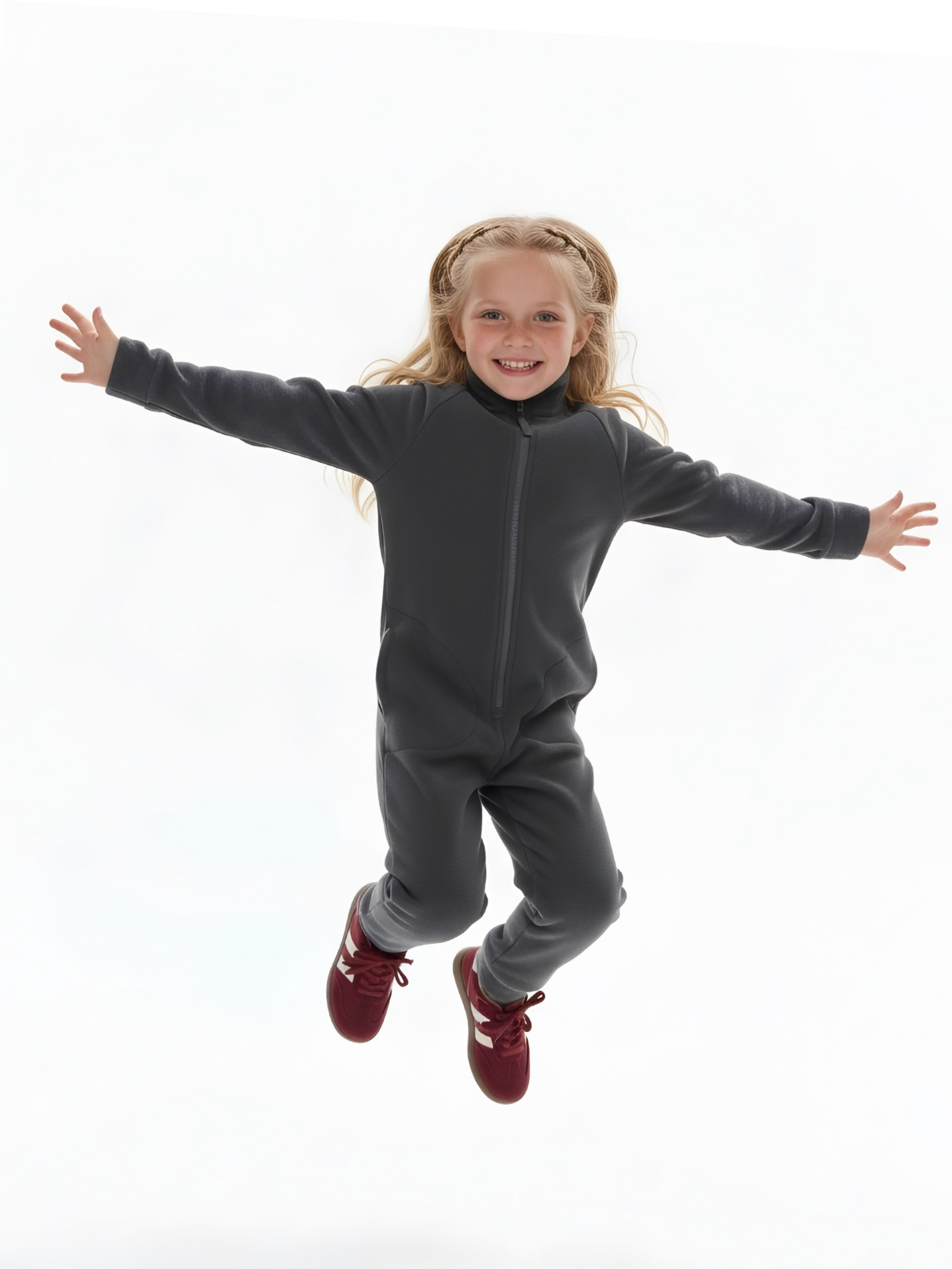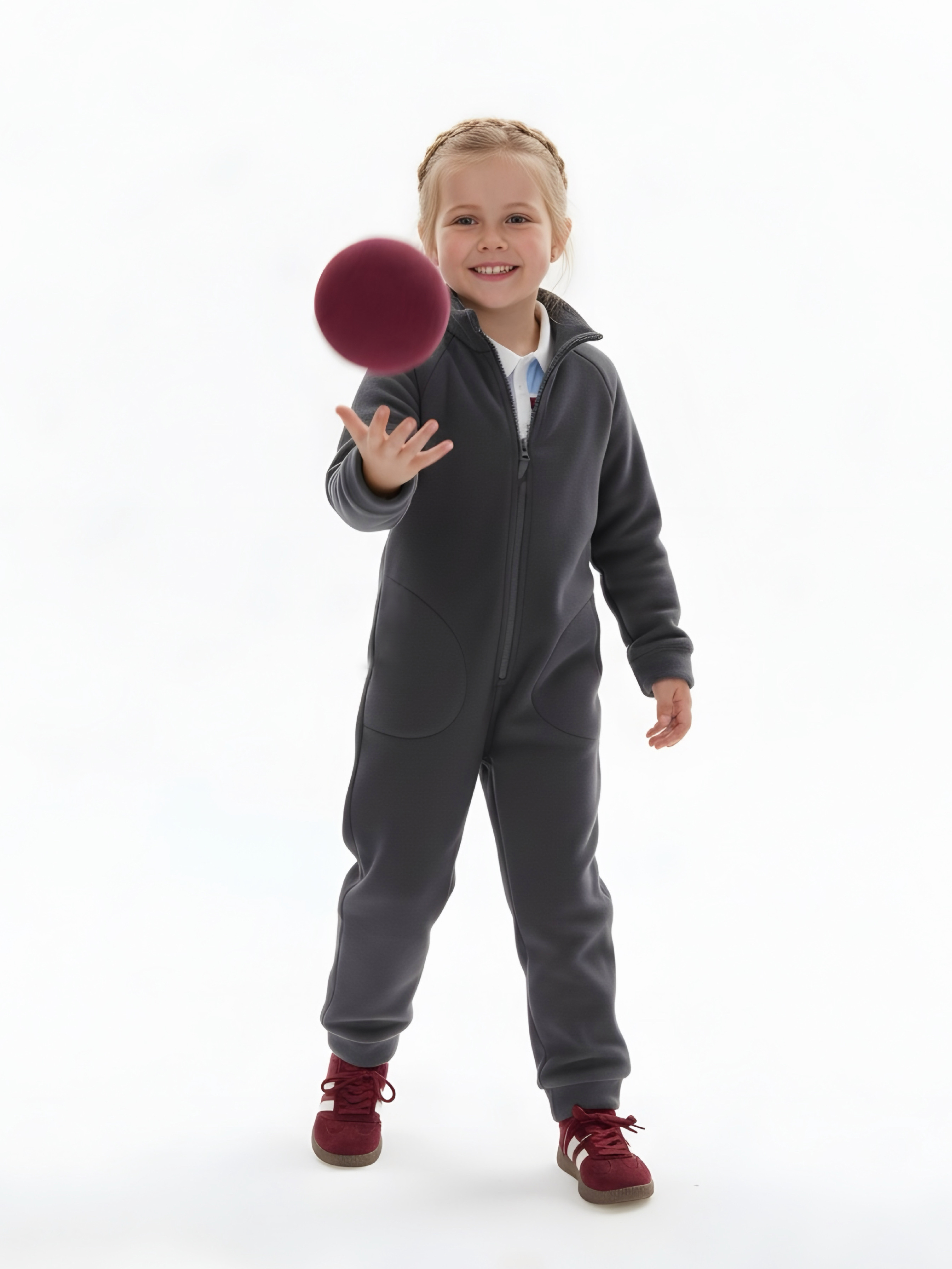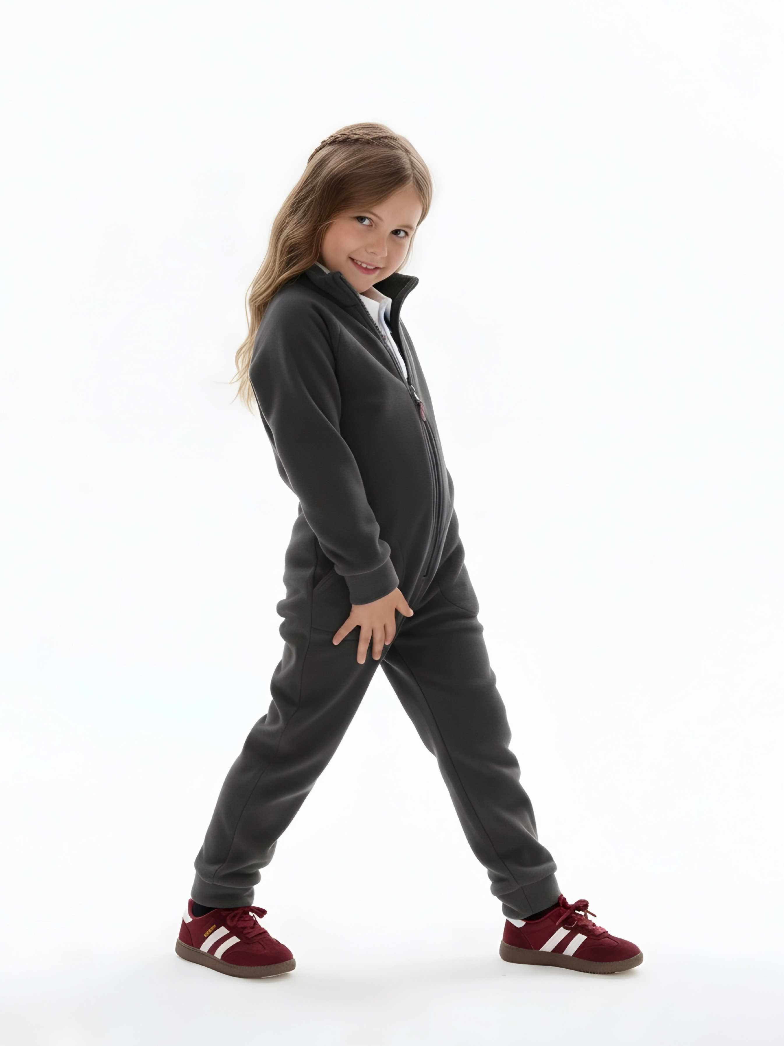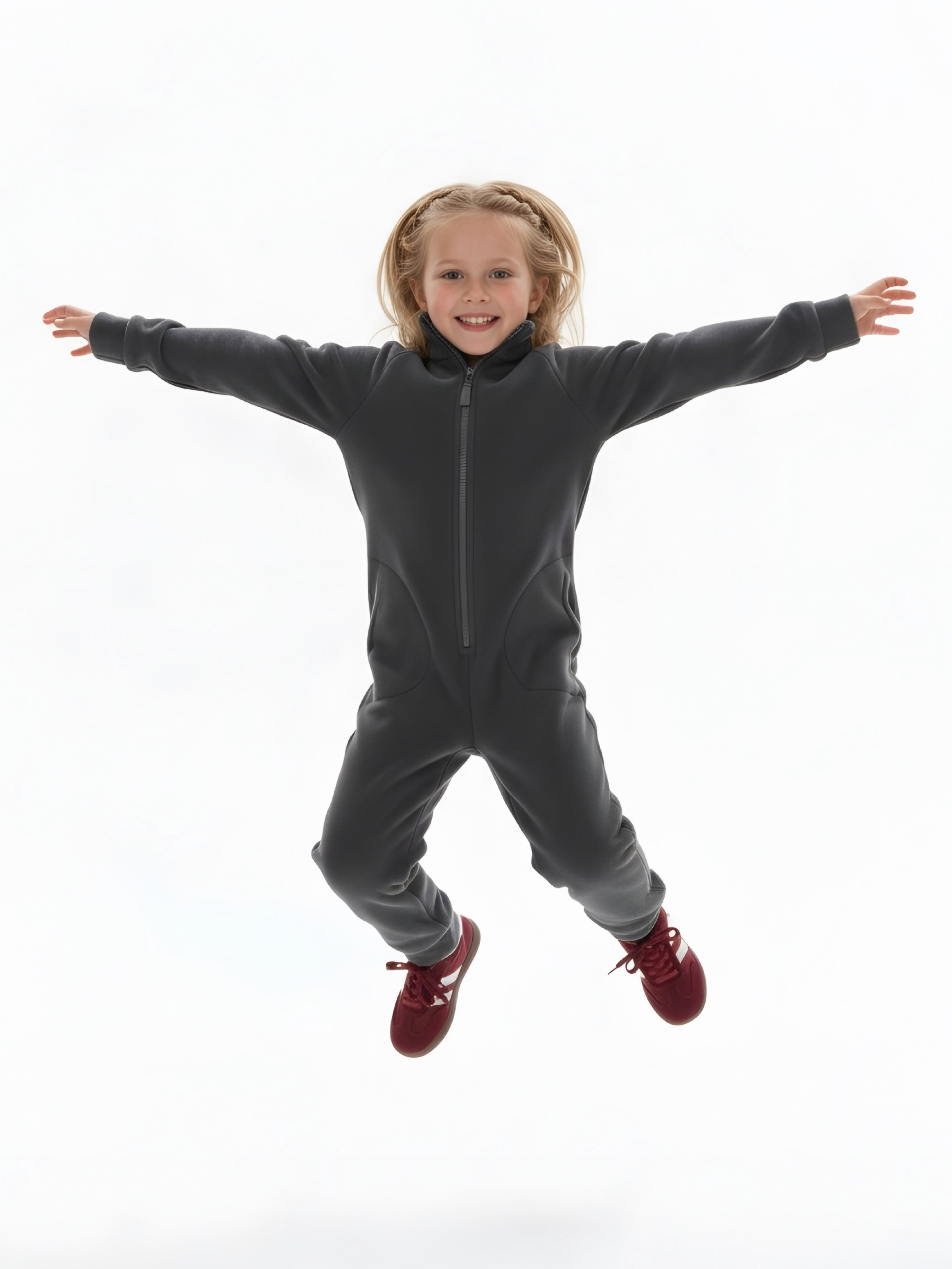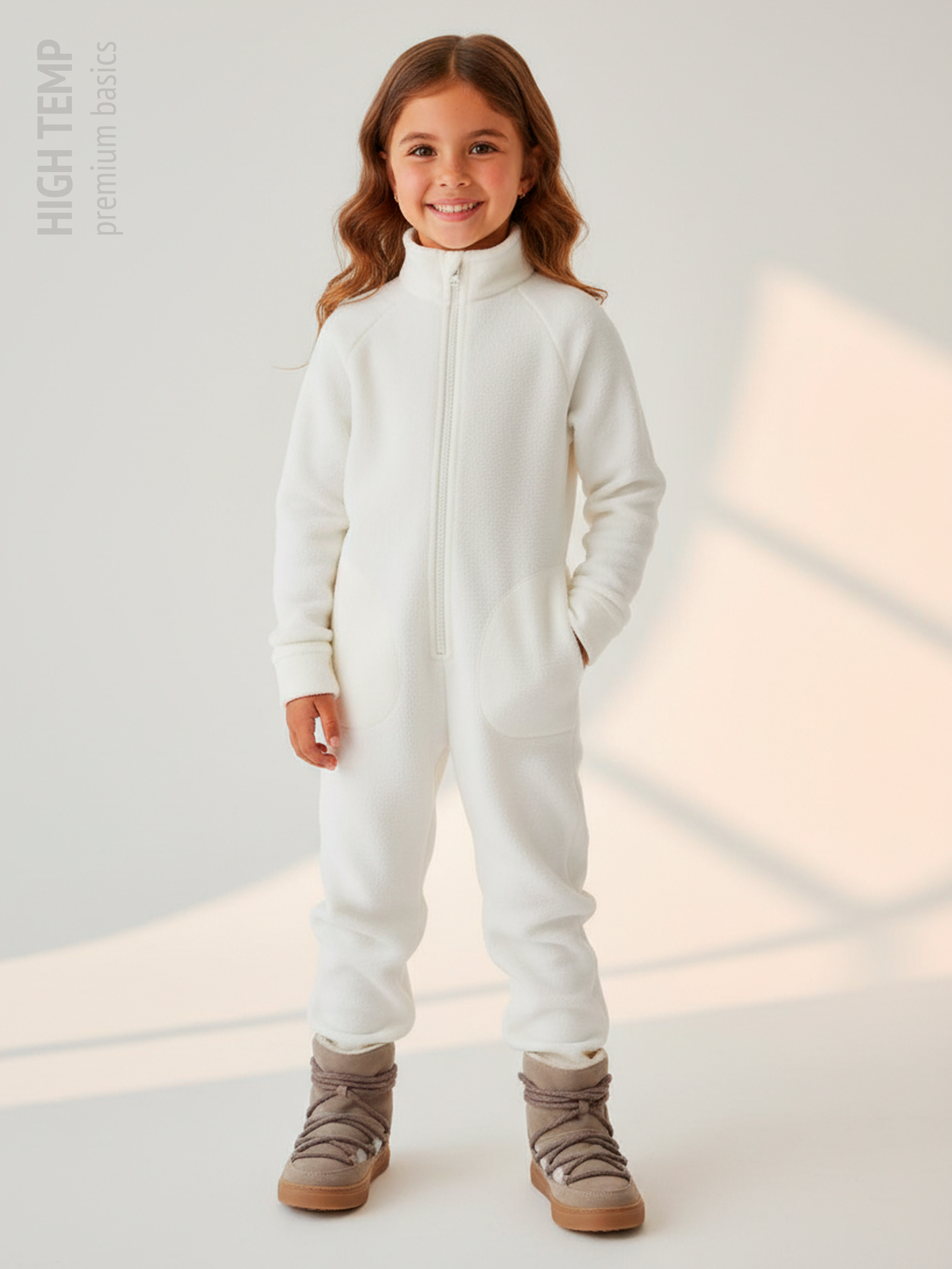 Комбинезон детский флис с резинкой на талии и глубокими карманами. Застежка на молнию. Воротник-стойка с защитным клапаном.